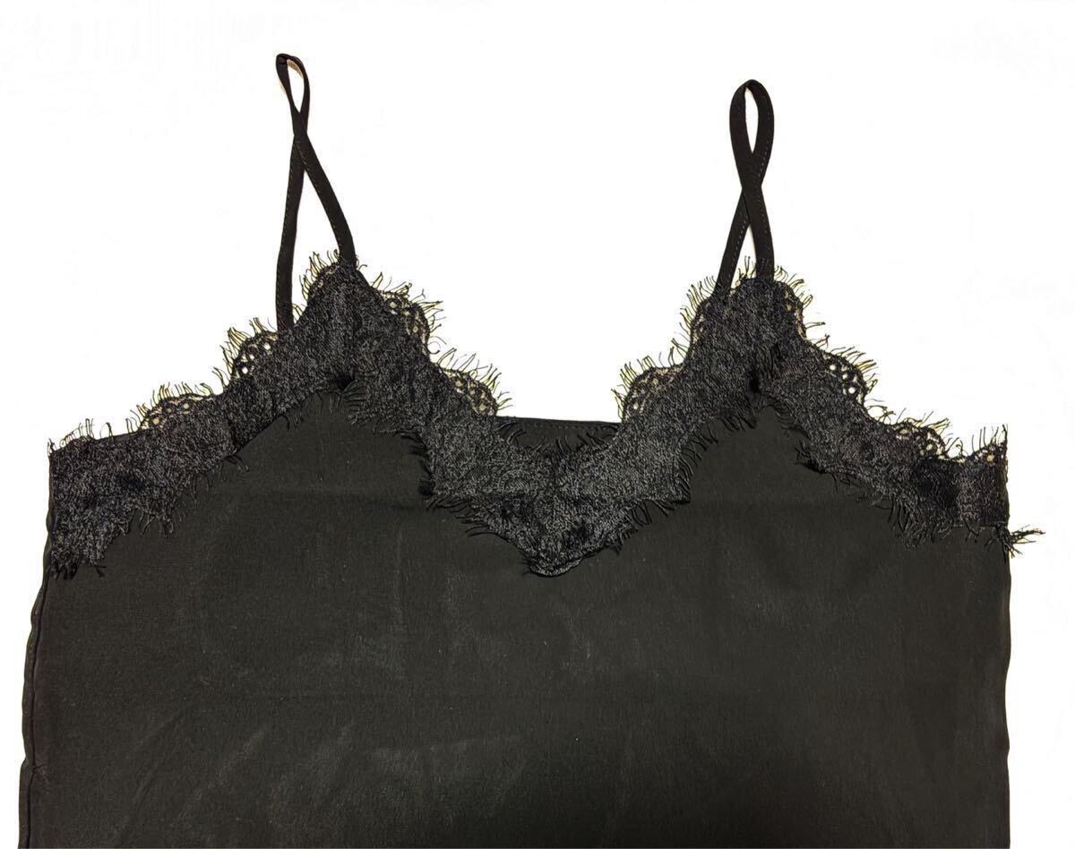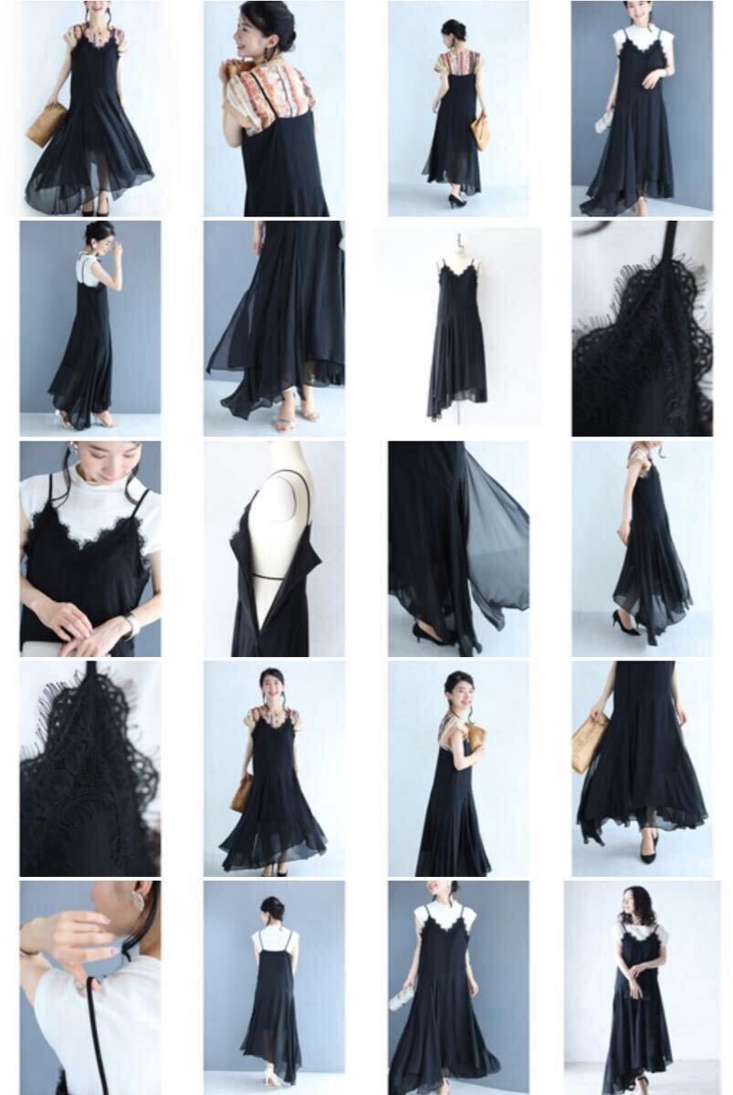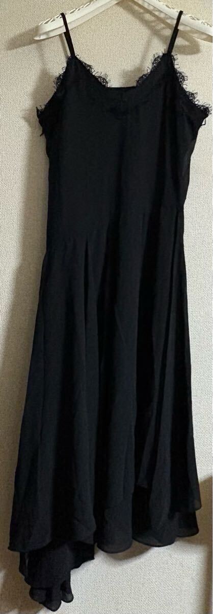風に揺れるアシンメトリーな裾。胸元レースのキャミワンピース