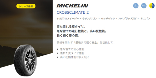 | | 【タイヤ詳細】 | ミシュラン CROSSCLIMATE MICHELIN 2 クロスクライメイト