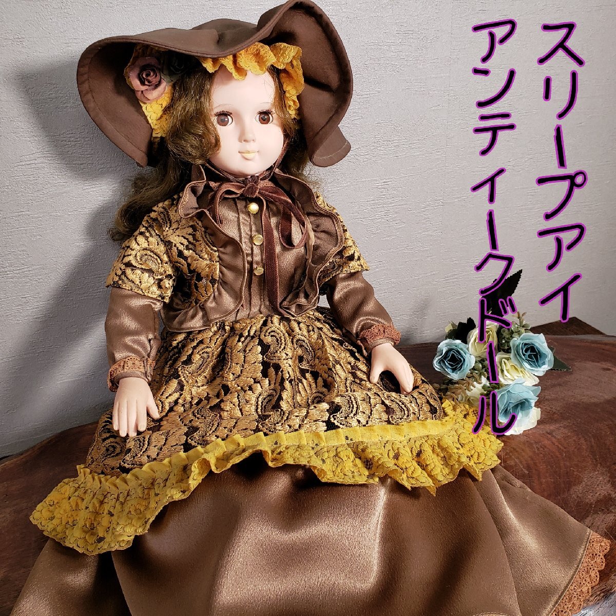 | 注意事項 | 汚れ、擦れ、素材の劣化 | 担当者コメント | 古いスリープアイの人形です。優しい表情でとてもかわいらしいです。経年による汚れ、擦れがあります。髪の絡まりや素材の劣化があります。腕や顔は陶器製ではありません。樹脂製と思われます。 | 発送サイズ | 【120サイズ】 | 送料 | 送料一覧表はこちら | 発送日 |  |   梱包方法 | プチプチ、新聞紙等を使い丁寧に包んでいます | 当ストアは再利用ダンボールを積極的に使用しています まとめて発送について(同梱) | 同梱対応も承っております。 | ※※同梱ご希望の方は必ずお支払い前にご連絡下さい。 特にコンビニ払いの場合は、支払い後変更できません。 商品の組み合わせ次第では、追加送料をお振込み頂く場合がございます。
