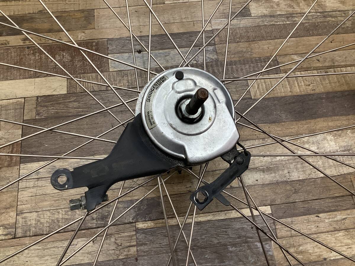 | 商品説明 | ブリヂストン アシスタDX(A6D26)26インチについていたホイールになります。 ※タイヤは要交換です。 ※スポーク曲がりは写真で判断して下さい。 ※実動車からの取り外し(動作確認実施済み)ですが、中古品の為動作の保証はおこなっていません。 ※中古品の為消耗部分はあります。気になる方は新品を購入してください。 ※前・後輪ホイールに関しては他の商品とのおまとめ及び同梱は出来ません。 中古品のため汚れ、傷、あります。 写真に写っているものが全てです。 画像にてご確認ください。 |