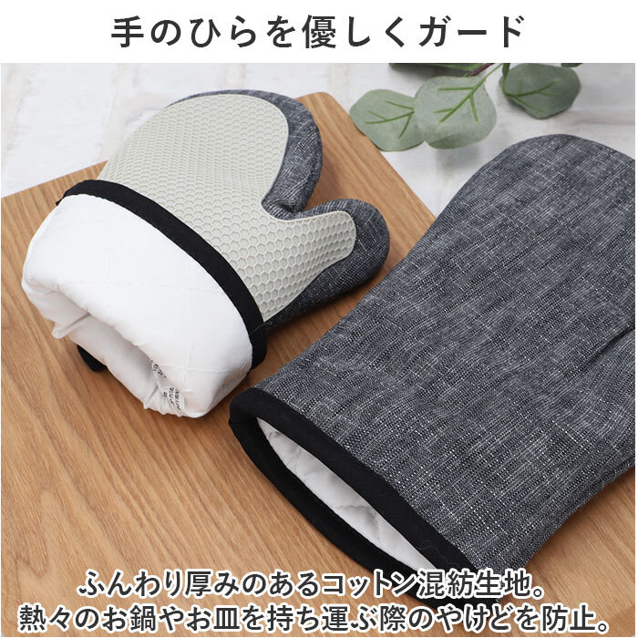 | 商品説明 | ・・毎日のお料理に欠かせないアイテム!ナチュラル可愛い鍋つかみが登場。 ・【キッチンに馴染むシンプルデザイン】 ・キッチンの雰囲気を邪魔することなく、飽きのこないカラーリング&デザイン。 ・【手のひらを優しくガード】 ・ふんわり厚みのあるコットン混紡生地。熱々のお鍋やお皿を持ち運ぶ際のやけどを防止。 ・【耐熱性があり滑りにくい素材】 ・手のひら部分は耐熱性のあるシリコーン素材。凹凸仕様で滑りにくいのもポイント。 ・【手首もカバー!安心の大きめサイズ】 ・手首まで覆えるサイズ感。大きめの天板なども、しっかりと持つことができて安心。 ・【収納ラクラク◎ループ付き】 ・フックなどに掛けておけば、いつでもサッと取り出しOK。 ・【両手で持てる便利な2個セット】 ・2個セットなので、両手鍋やグラタン皿などを両手で持てて、毎日大活躍。 |