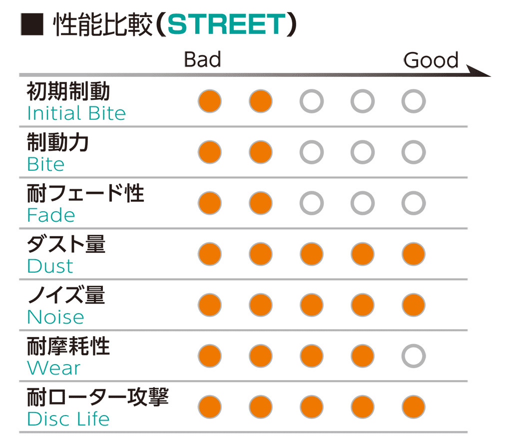 | ■商品説明 | 低ダスト、低ノイズを実現し、市街地から高速走行まで、ドライバーに心地良いブレーキフィールをもたらします。 環境に配慮し材質を「カッパーフリー」へリニューアル致しました。 【材質】カッパーフリー(Copper free) 【温度域】0~400℃ 【摩擦係数】0.34~0.38μ |