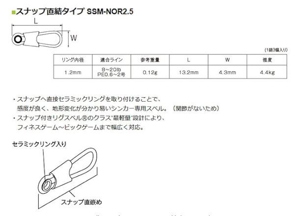 今までになかった、新感覚のスイベルが登場!!新たな釣りのスタイルが実現。狙ったポイントに、ルアーをスムーズに送り込め、ラインをキズつけない、セラミックリング入り設計。ルアーアクションを最大限に活かす遊動リグに完全対応。強度:4.4kg適合ライン:8~20lb(PE0.6~2号)入数:3個 (★複数在庫あります) |