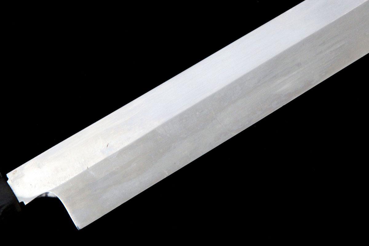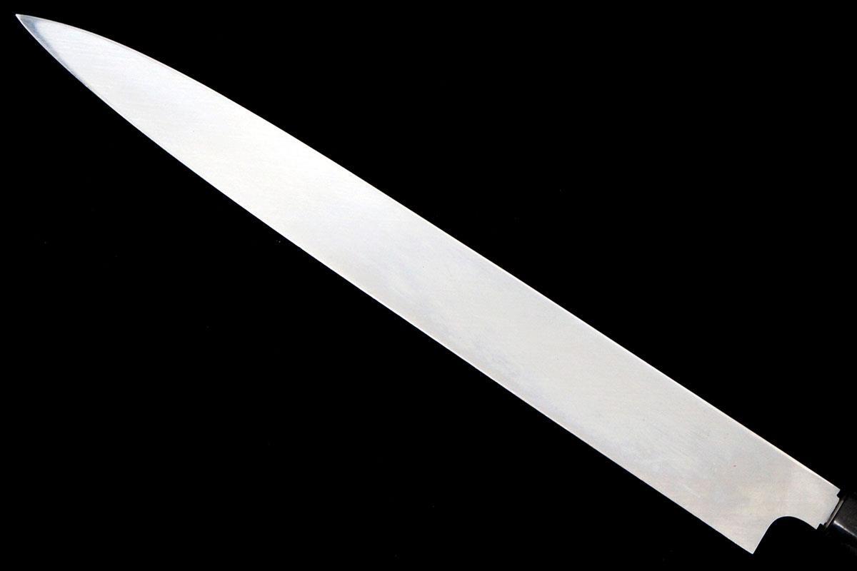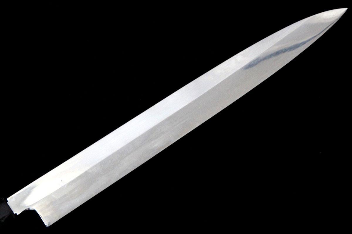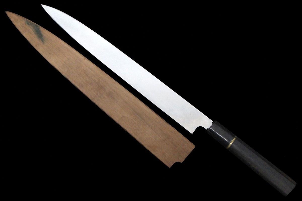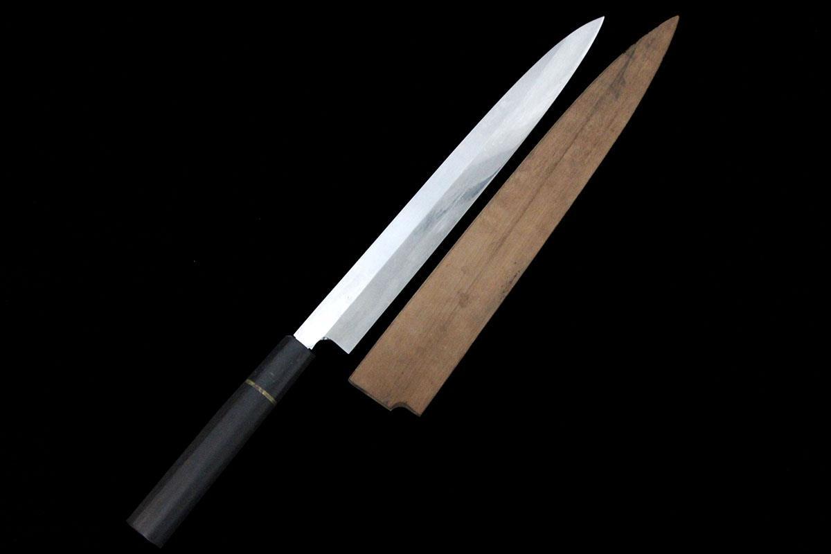 無銘 柳刃包丁 本焼 尺 黒檀半丸六角柄 白鞘付