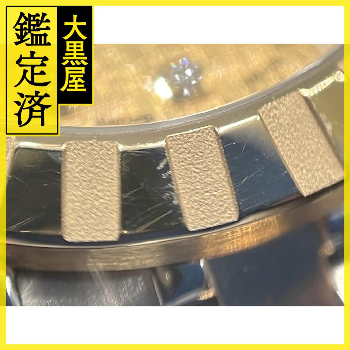 | 詳細 | 【商品コード】 2148103902017 【サイズ】 ケース径:28.0m?m 腕周り:内径最大約18.5cm 【付属品】 外内箱 保証書(2016年10月並行品) 冊子 タグ 【保証】 御購入日より弊社6ヵ月保証開始 税抜50,000円未満は保証対象外 ムーブメント自然故障応対のみ クオーツ時計の電池自然切れは6ヶ月以内で交換応対 破損・水没・磁気帯び等の外的要因は対象外 日本国内販売品のみ対象 【修理履歴】 弊社での修理履歴は御座いません。 【状態】 《風防》 8時方向ガラス内側に黒い糸くず。 《文字盤》 針小傷。 《ベゼル》 6時方向擦れ傷。 《ケース》 微細な線傷。薄い擦れ傷。 《ラグ》 裏側に薄い工具線傷。 《裏蓋》 肉眼で確認出来る目立ったダメージは見受けられません。 《ブレスレット》 肉眼で確認出来る目立ったダメージは見受けられません。 画像の保護テープは劣化により有りません。 《バックル》 肉眼で確認出来る目立ったダメージは見受けられません。 【注意】 各出品サイトによって掲載される写真の枚数制限が御座いますので、詳しい状態についてご気軽にお問い合わせください。 此方の商品は店頭展示商品の為、ネット掲載状態から変わる場合が御座います。ご注文後、店舗から状態確認についてご連絡する場合が御座います。詳細に関して、お気軽にお問い合わせ下さいませ。 商品画像は、モニター環境により実際の商品と色・質感等が若干異なる場合があり、実物を蛍光灯や自然光の下でご覧になった場合と色味が異なる場合がありますので、 ご理解の上ご購入頂きますようお願い致します。 又、細心の注意を払って御取扱い致しておりますが、「中古品」の為、商品確保時に、動作不良やキズ等の不備により、弊社より確保保留の御案内及び、キャンセルとさせて頂く場合が御座います。 予め、御了承下さいませ。 ~・~・~・~・~・~・~・~・~・~・~・~・ 海外のお客様へ 基本情報内の「年」は保証書に記載されている購入年を指しています。 販売価格に輸入税、関税、消費税、配送料、送金手数料等は含まれておりません。 全て別途でお客様負担となります。予め御理解頂いた上で、御注文をお願い致します。 配送はDHLにて発送しております。配送業者の指定は承りかねます。 購入後の商品は安全かつ迅速にお届けします。 注意 1 表示価格は税抜価格(免税価格)です。 発送時に低い金額で申告して発送する事はできません。そのような質問はお辞めください。 輸入税は表示価格に含まれていません、すべての支払われる税は買い手の責任です。 2 わに革及びトカゲ革等のエキゾチックレザーベルトはワシントン条約による輸出制限のため海外発送できません。 ベルトは除いての発送となります。 3 ホテルなどの宿泊先への発送は出来ません。 4 通関された貨物には、あらゆる税金が課されます。掛かる税金は全てお客様のご負担となります。予め御了承下さいませ。 理由を問わず、お客様が荷物を受取をされずに弊社へ戻ってきた場合、返送に掛かった配送料等は全てお客様に請求させて頂きます。 | ||