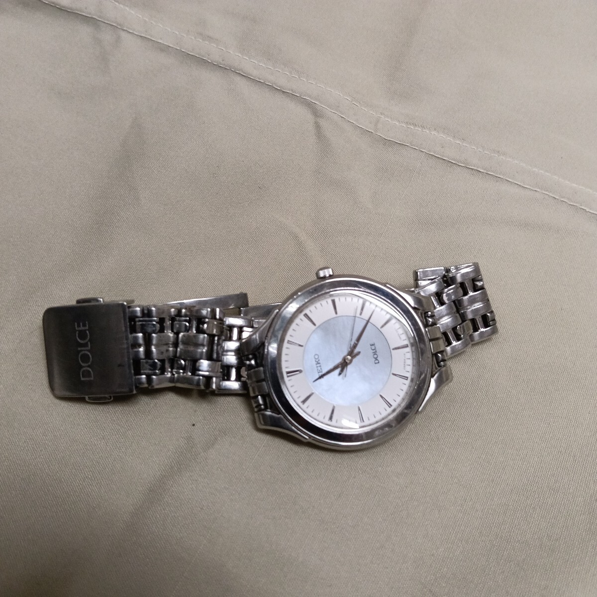 商品に興味をもっていただき、ありがとうございます。セイコー ドルチェ クォーツ時計です。 現在動いて 時間もあっていますが 精度は分かりません。 ベルトは共バンドです。 腕周り 約19.5cm 。 ずはありますが大きな傷はありません。 文字盤にSEIKO DOLCE JAPAN V181-OADO 裏蓋にSEIKO V181-OACO R 2 MEDE IN JAPAN 5D 0120 ヤマト運輸 宅急便で発送いたします。運賃は全国一律1000円ですが 北海道 1200円 沖縄 1300円 離島 1600円です。| 出价者 | 信用 | 价格 | 时间 |