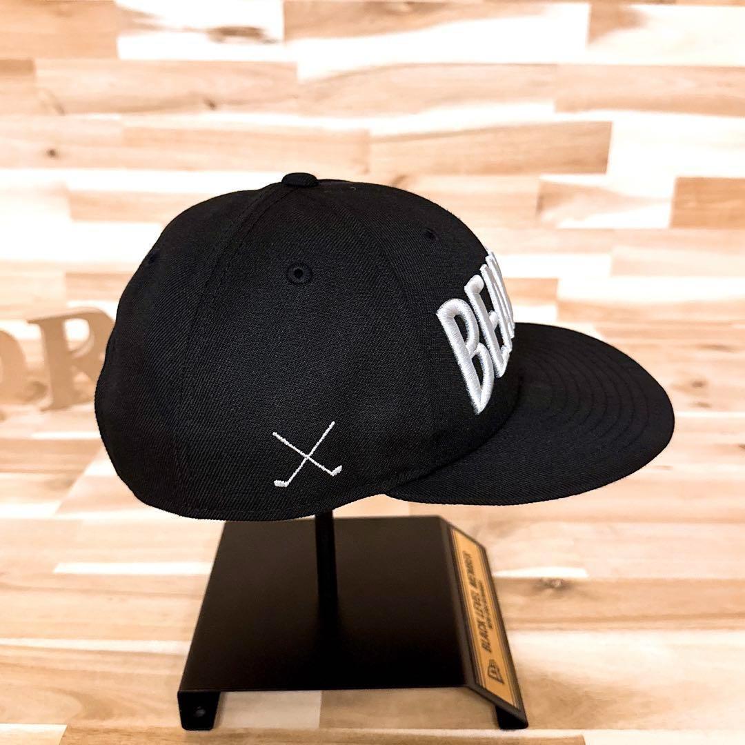 深みのあるブラックカラーが全体を引き締め、落ち着きがありながらも都会的な印象を与えるデザイン。フロントに施されたシルバー糸の立体的な刺繍ロゴが存在感を放ち、両サイドにレイアウトされたNEフラッグロゴ、ゴルフクラブをクロスさせたオリジナルロゴが見る角度によって表情をさりげなく変えるNEW ERA × BEAMS GOLFコラボのキャップです。既に完売。生産も終了しており、オークションやフリマでも見ることの少ないレアなアイテムです。