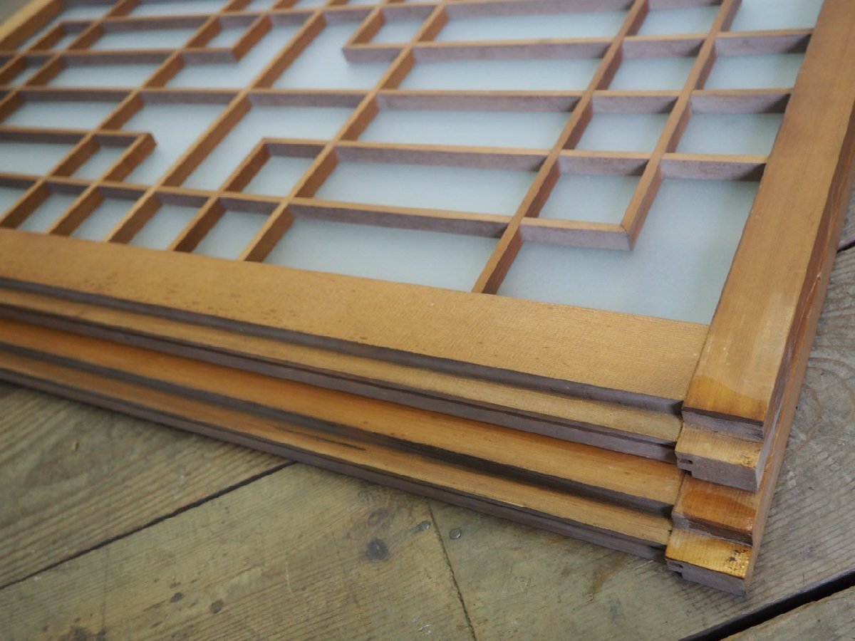 商品情報 | ■商品詳細■ レトロな古い木製引き戸、2枚セットです。 長年使い込まれた味わいのある品です。 ガラスは、モールガラスと曇りガラスを使用しています。 一般のご家庭はもちろん、レトロな店舗什器にもお勧めです。 経年の傷や欠け、染み等がありますが、使用には問題ありません。 ガラスにヒビや割れはありません。 古い物とご理解いただければ幸いです。 ◆別カテゴリーにて、同じデザインの品(T0266)を出品していますので まとめてご希望の場合は、ストア内検索で上記の管理番号を検索して頂ければと思います。 売買済みの場合はご了承下さい。 ご不明な点などありましたら、質問欄にてお願いします。 ■サイズ■ 全体(最大値) (H 179cm×W 90,7cm×D 3,5cm)×2枚 竪框 3,5cm 鴨居に入る部分 1,7cm 多少の誤差はご了承下さい。 ドライバー1人での配達になりますので、場合(通路が狭い等)によっては 荷運びのお手伝いをお願いすることがあります。 商品は玄関先までの配達になります。 |