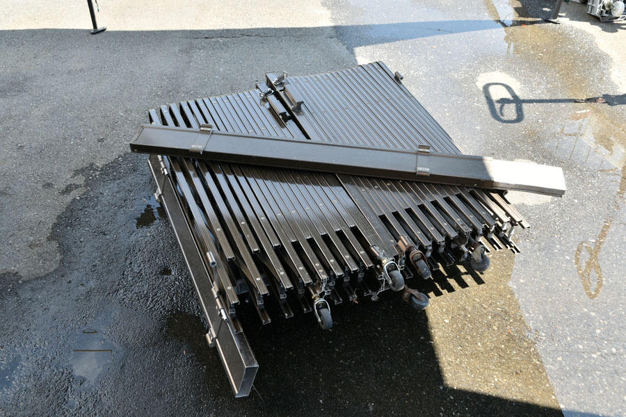 ----------------------------------------------------------------------------------------- ●送料や注意事項は必ずご確認下さい。落札後にトラブルになるケースが増えております。● ◆コンディションは写真・文章にて記載して有りますが、全てのキズの写真は掲載致しておりません。大きなダメージを除き見落とし、記載漏れが有る事はご了承下さい。 ◆当サイトにて出品する商品は多種多彩で、当方商品知識の無い物も多数ありますので落札後の質問やメンテナンス等にはお答えできません。 ◆入札された時点で、画像、文章をご理解していただいたものと判断させていただきます。不明な点は前もってQ&Aからお願い致します。入札後の質問やお電話等でのキャンセルは一切受け付け致しません。 ◆商品説明に「ノークレーム」と記載しているものに関しては、如何なる状況で届いても保証致しません。詳しくは注意事項の「商品到着後について」の最後に記載しておりますのでご確認下さい。 ---------------------------------------------------------------------------------------- 中古品ですのでキズ、ヨゴレ、サビ等あります。未清掃です。 画像のように開きますがキャスターは動きません。 パーツ揃っているかどうかは分かりません。 こちらの商品は、運送事故を含め、ノークレームのジャンク品での出品とさせて頂きます。 運送保険も入りませんので、業者補償もありません。予めご了承下さい。 片方(収納時) 幅50 奥17 高110cm | ||