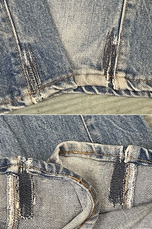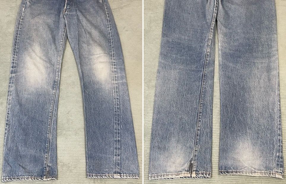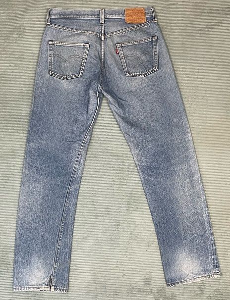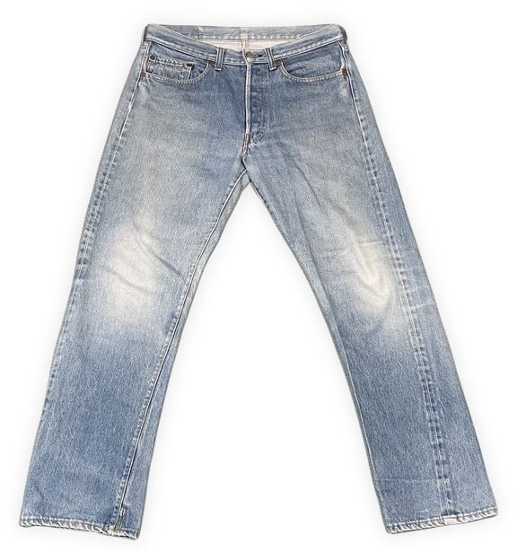| サイズ | 表記:W32L34 *縮みや丈上げがある場合がございますので必ず実寸を参考にして下さい。 実寸(平置き計測):ウエスト80 レングス79(オリジナルのチェーンステッチ *補修あり) 総丈105 股上29 裾幅20cm ☆ 多少の誤差はご了承下さい。 |