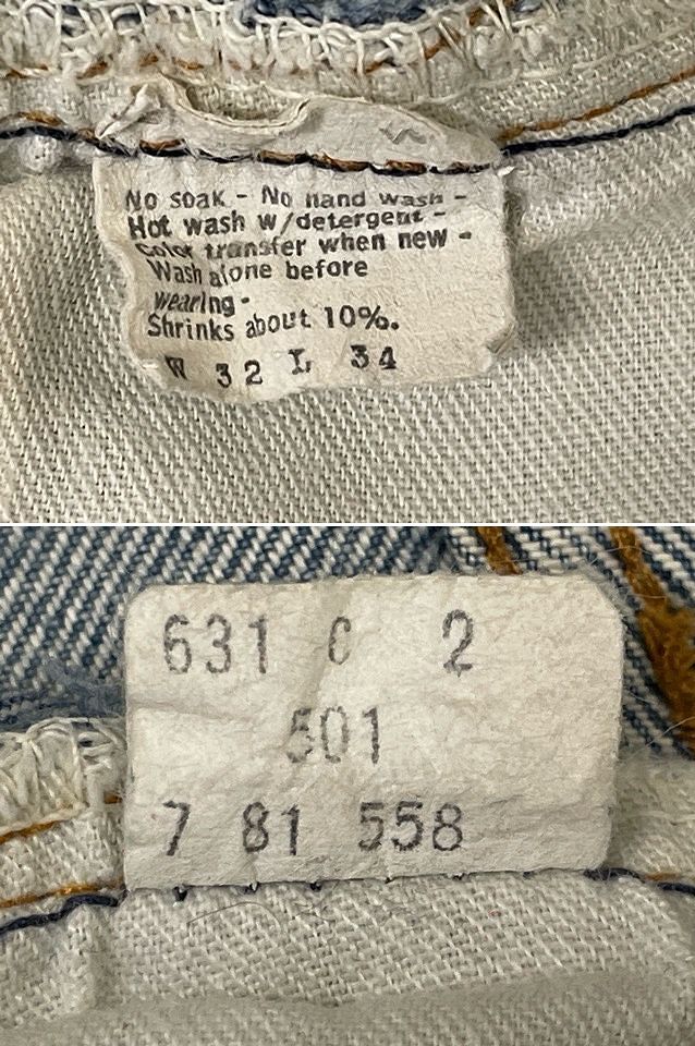 | 説明 | 80's 1981の501赤耳です セルビッチ、黒カン、内股シングルです 色は薄めですがひげ・耳あたりもでておりいい雰囲気の色落ちです 裾はオリジナルのチェーンステッチです アメリカ製 558工場 |
