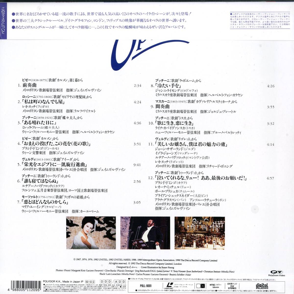コメント 【この商品はレーザーディスクです。ビデオテープ・DVD・ブルーレイではございません。再生には専用プレーヤーが必要です。】ドミンゴ、パヴァロッティ、フレーニ、ほか
