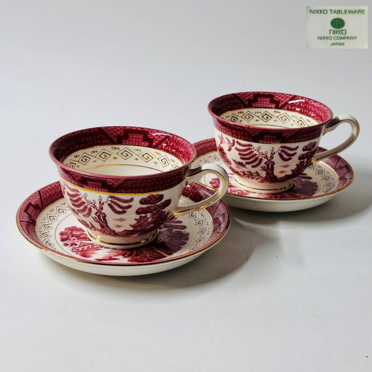 NIKKO TABLEWARE ダブルフェニックス レッドウィロー 山水 比翼連理 カップ&ソーサー 2客組 茶器 経年保管品 現状品の出品です。