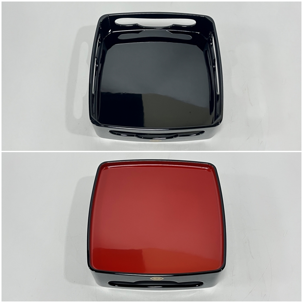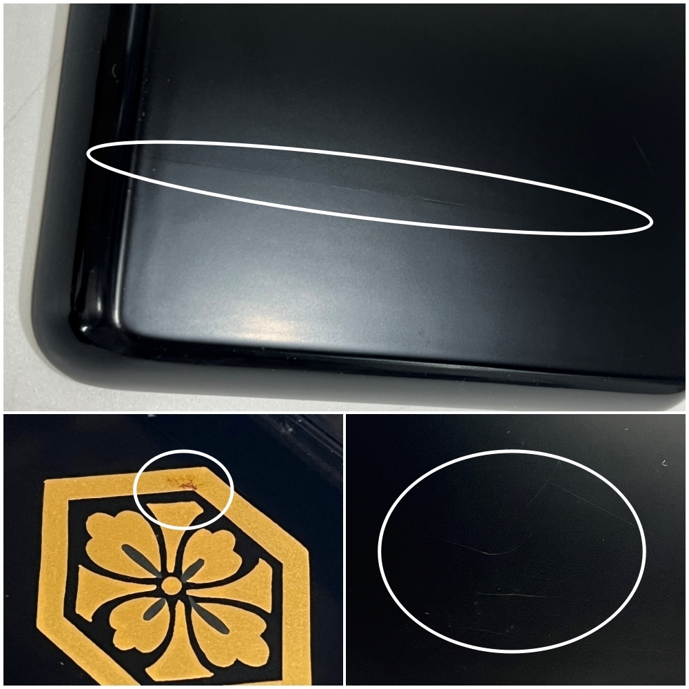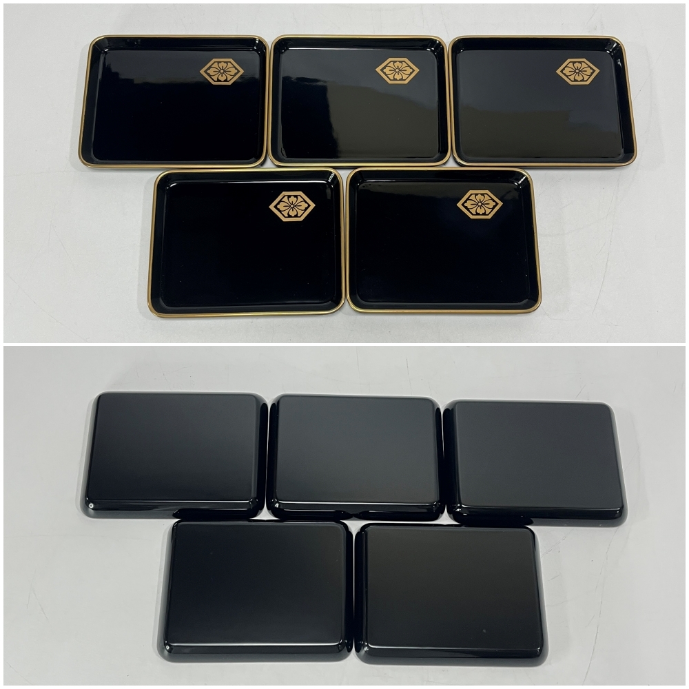 状態は5枚入りの漆器の1枚に紋あたりに汚れがついています。