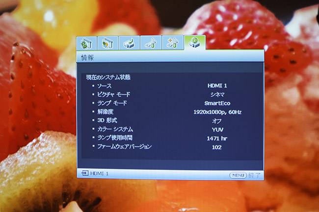 ・ランプ使用時間は1471時間です。MH741はランプ交換時期5000時間の長寿命モデルですので長くお楽しみ頂けます。