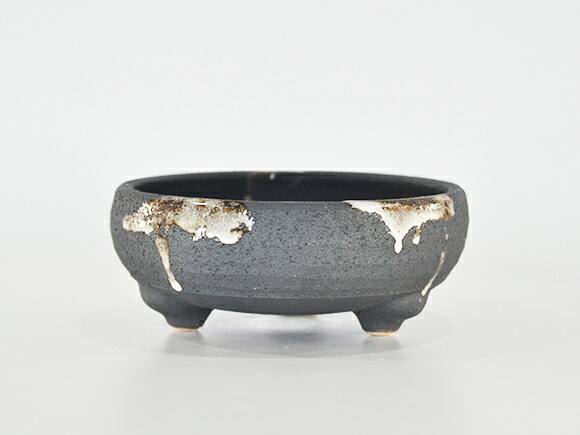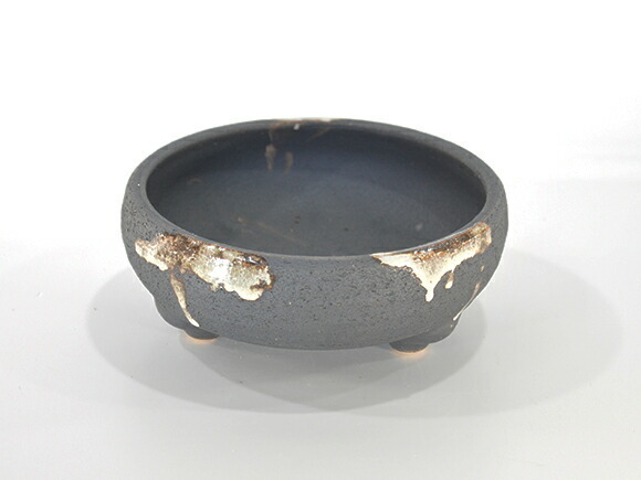 和風の落ち着いたいぶし銀にトロッとかかった釉薬がポイントです。 盆栽鉢 信楽焼 6号 鉄鉢 いぶし 幅18cm×高さ7.5cm