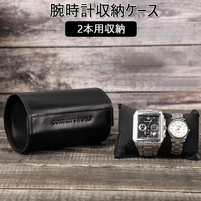 ウォッチケース 2本用 コレクションケース 腕時計ケース ブラック ウオッチ ディスプレイ 腕時計 本革 収納ボックス ブラック/1点