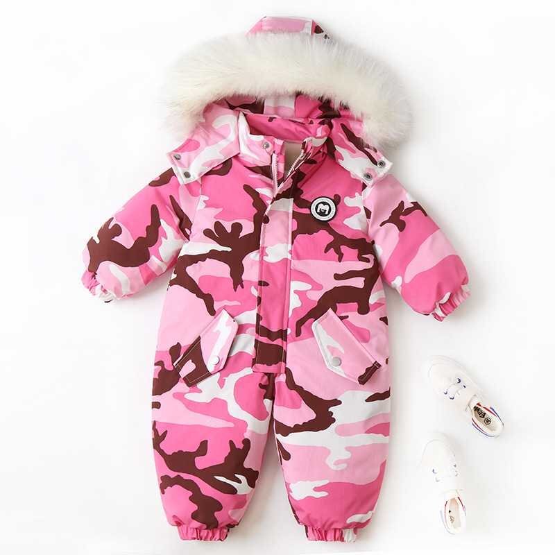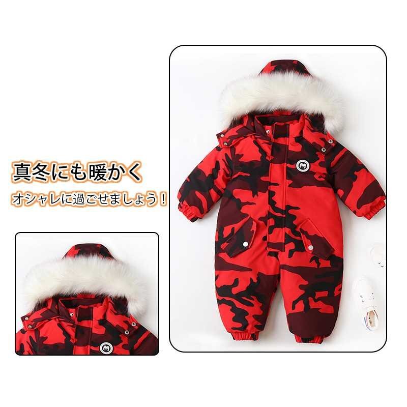 スノーウェア カバーオール ベビー服 おくるみ ロンパース 厚手 フード付迷彩 ダウン 前開き ファスナー雪遊び 防寒着☆2色/90~120選択/1点 [浏览原始页面]