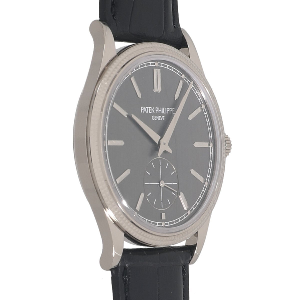 | モデルについて | 2021年の新作 パテックフィリップの象徴的コレクションであるカラトラバ。シンプルな機能とエレガントなラウンドケースが人気です。ホブネイルパターンのベゼルを採用した伝統的なデザインに、39ミリと現代的なケースサイズを組み合わせたデザインへリニューアルされました。縦方向にサテン仕上げが施されたグレーのダイヤルに、ホワイトゴールドのケースがエレガントさとシックな趣きを感じさせます。手巻きムーブメントCal.30-255 PSを搭載しています。この全く新しいムーブメントは2.55mmという薄さでありながら、2つの香箱を採用する事により65時間のパワーリザーブが実現されています。 |