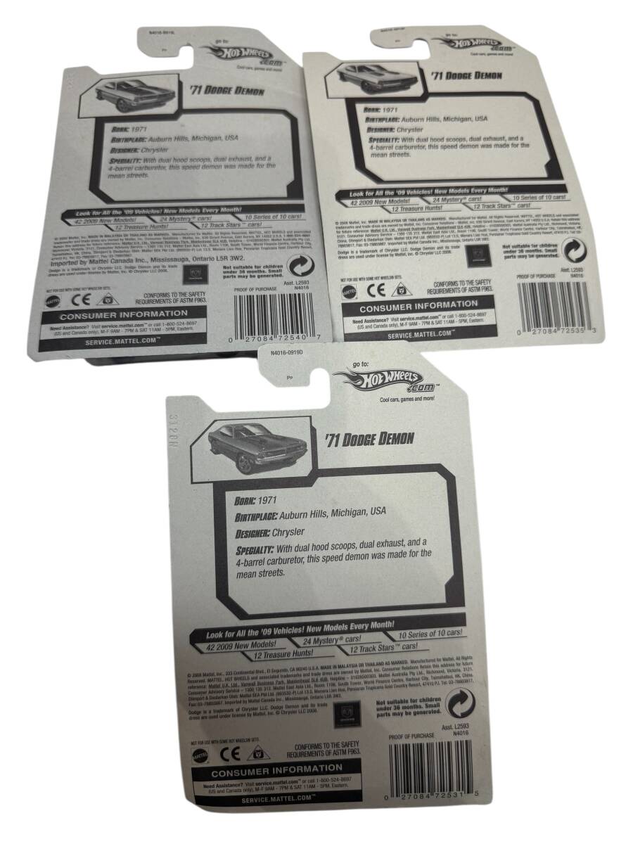 | ●S7-10-400 ホットウィール 『2009 NEW MODELS ‘71DOOGE DEMON』3台セット 013/190 色違い ダッチ・デーモン 未開封 | |||
