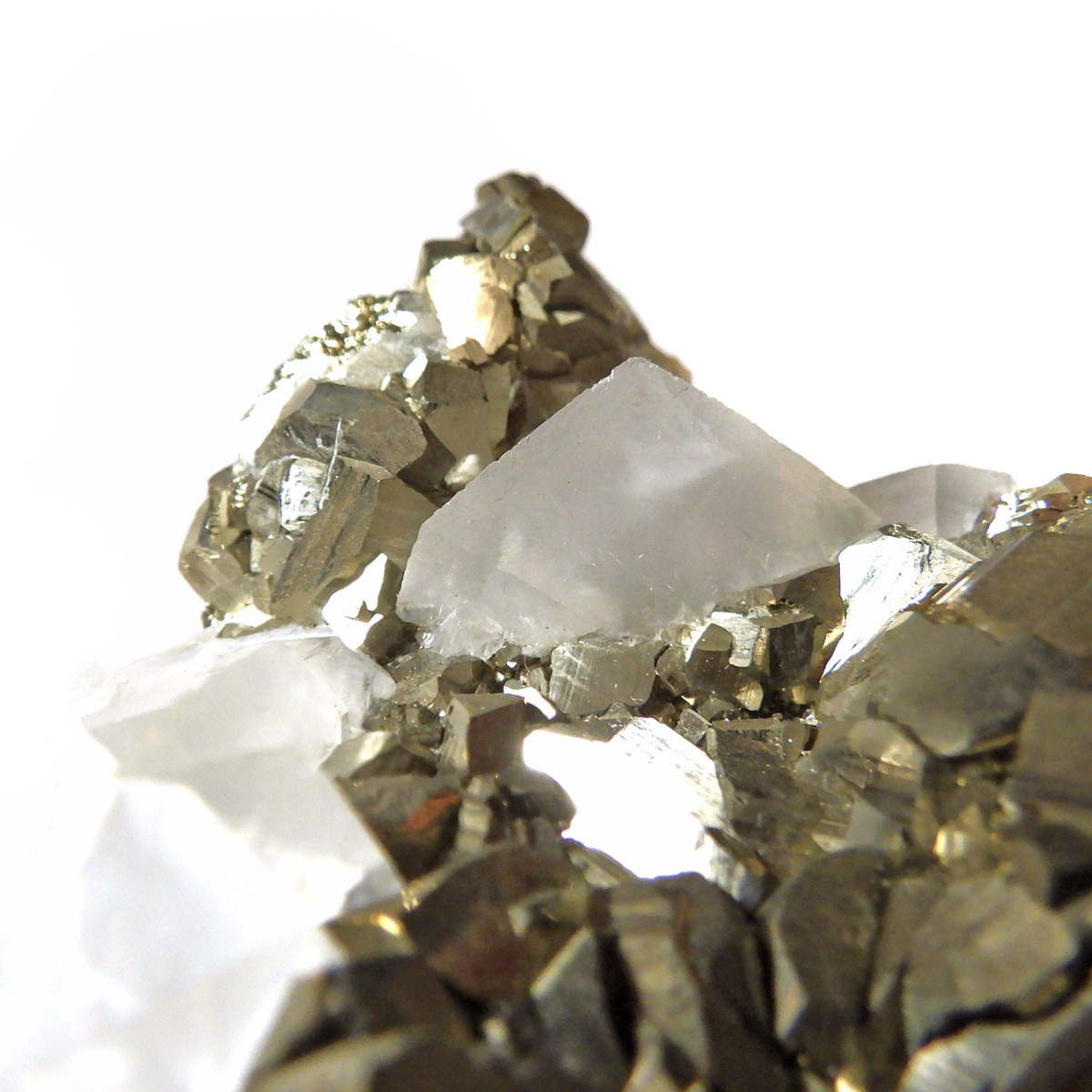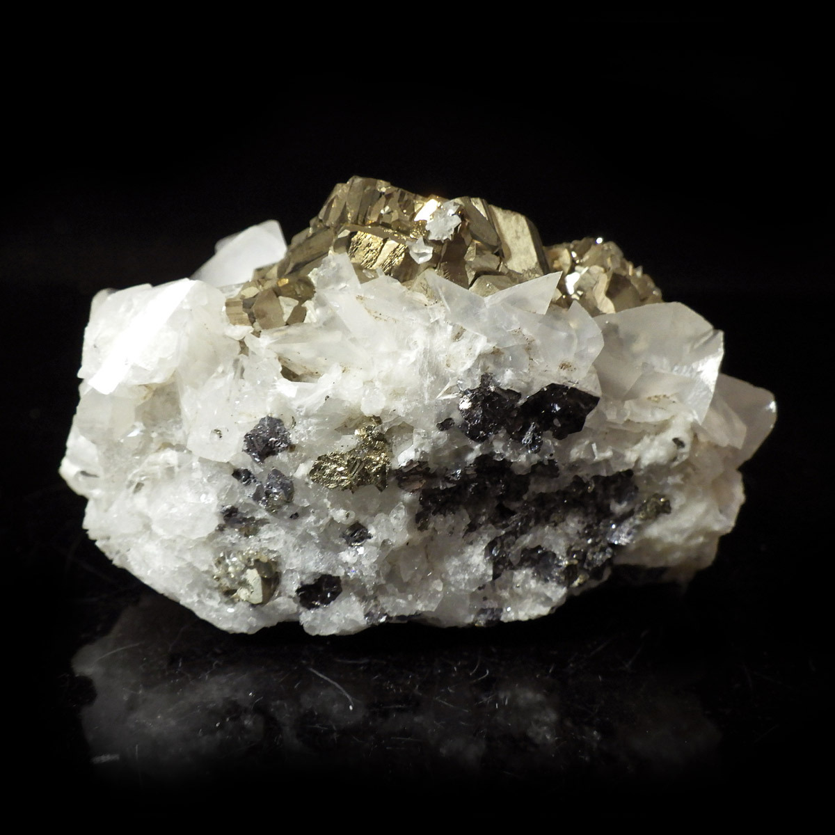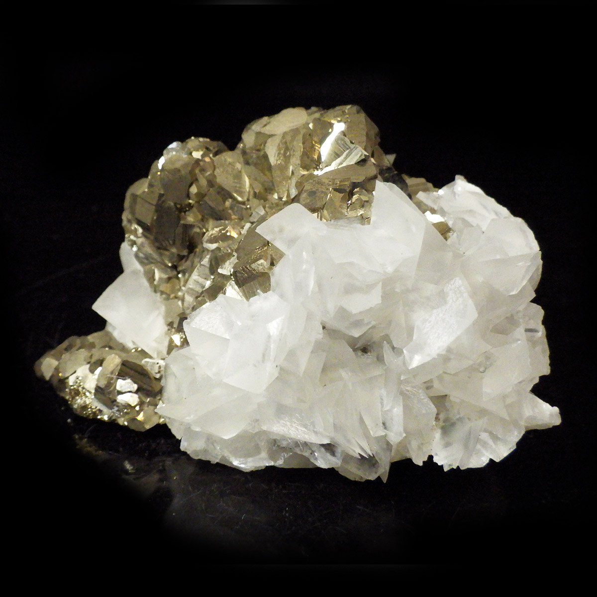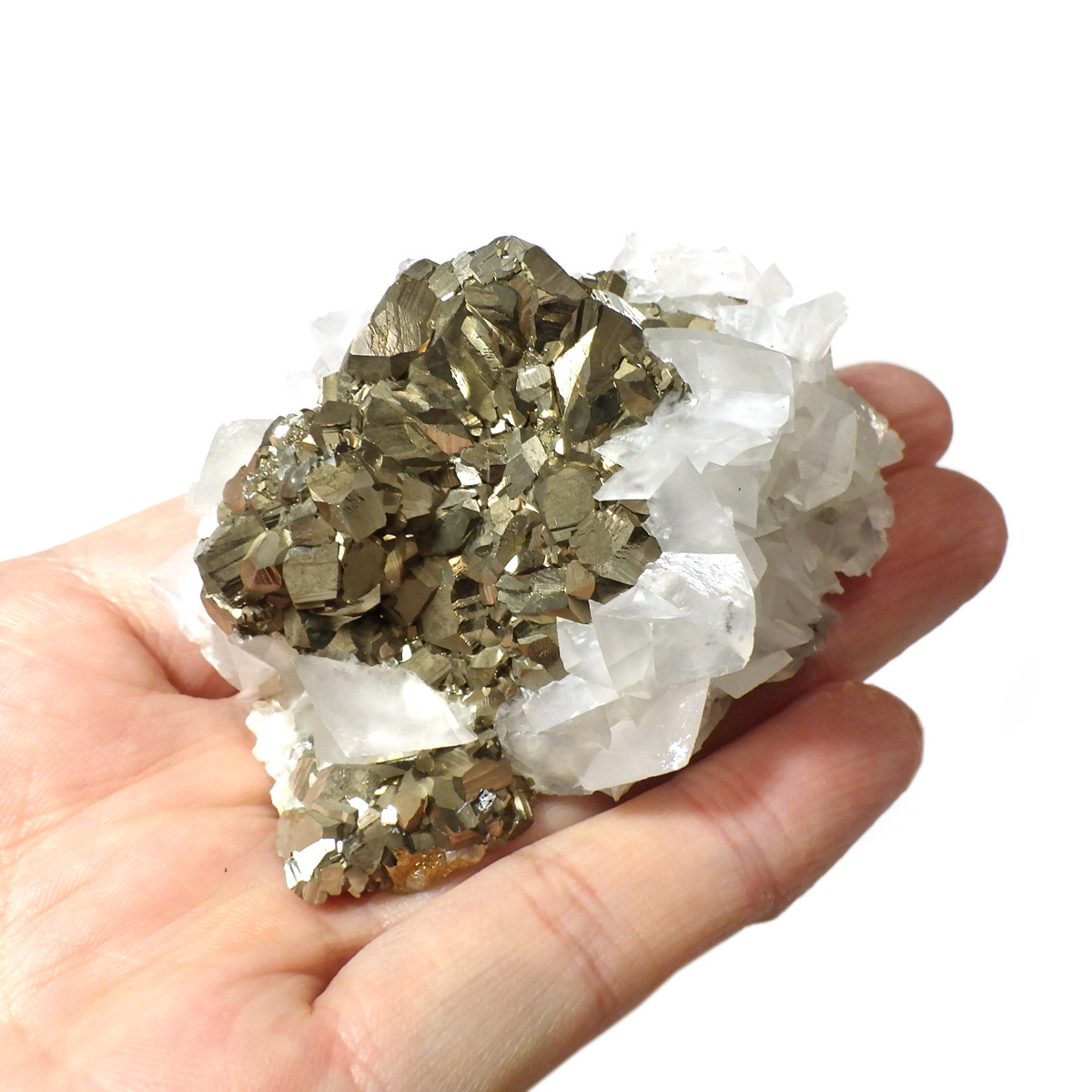はっきりとした結晶を持つパイライト(黄鉄鉱)とカルサイト(方解石)が共生した原石です。パイライトの金属光沢のある表面が美しく輝き、結晶の形が明瞭で、左右で異なる表情を見せる姿はまさにアートのようです。パイライトの黄金色とカルサイトの柔らかな白色が調和し、重厚感の中にも上品さを感じさせる標本です。| 出价者 | 信用 | 价格 | 时间 |