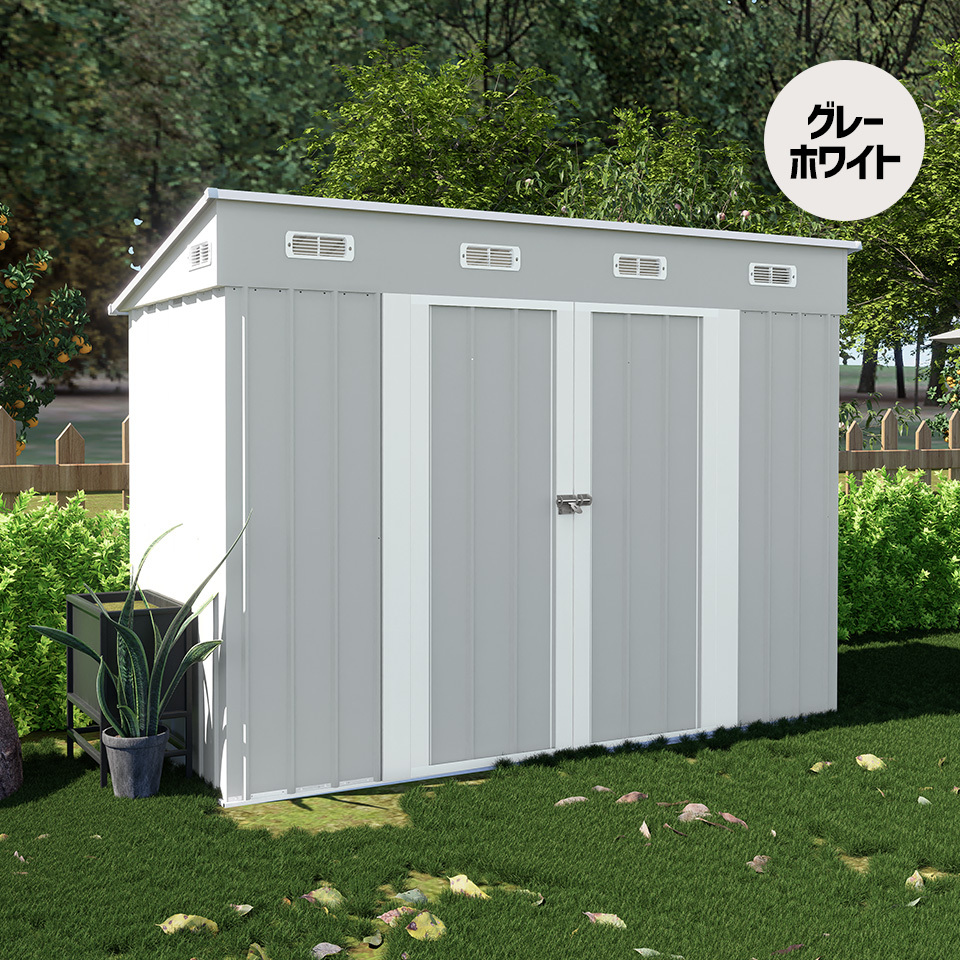◆01マルチに活躍! 置き場に困るものはまとめて収納 マルチに活躍する収納庫。家の周りで散乱しがちな荷物をすっきり! ゴミによるのカラスや猫のイタズラ対策にも最適です。 レジャー用品 ガーデンニング用品 掃除道具 資源ゴミ 子供用のプール、釣り具 自転車(自行):自転車や電動自転車の駐輪に適した広々としたエリアを提供。簡単に駐輪でき、必要なスペースを確保できます。 自転車用駐輪エリア:約2.667㎡ ◆02超大型収納スペースで圧倒的な収納力 4827Lの超大型収納スペースを提供し、庭や室内で場所を取る物品をきちんと片付けられます。 大型のガーデンツールや季節物の衣類、大きなスポーツ用品などをすべて一括収納。収納力が圧倒的だから、どんな物でも収めることができます。 ◆03扉の開閉が邪魔にならない!観音扉タイプ 観音扉タイプの扉は最大180度まで開くことができます。扉が全開にできるタイプなので、大きなサイズの倉庫でも内容物が一目で見やすく、取り出しやすくなります。 大きく開けられるため、荷物の出し入れが簡単です! ◆04施錠・解錠できる便利な機能 ロックピンは、下のボタンを上に押し上げることでロックされ、上のボタンを押すと縮んでロックが解除される仕組みになっています。使いやすく、スムーズに施錠・解錠ができる便利な機能です。 ◆05床材補強フレーム付き! スチール補強フレーム付きで、安全性・耐久性を向上させました! ※床材は付属しておりません。お客様にてご準備をお願いいたします。 ◆064段階調節 棚板が4段階調節を採用しており、1回の調節で28.6cmごとに高さ変更が可能です。 お好みや使用状況に合わせて、高さを調整できるので、スペースを有効に使いながらも自由なレイアウトが可能です。 安心の耐荷重 各棚板約20kg(1枚あたり) ◆07しっかりとした頑丈な素材 ハイテンション亜鉛メッキ鋼板採用! 有害物質が発生しない環境に配慮した粉体塗装仕上げで、衝撃に強くサビにくい特徴があります。 外部には特別な防水加工が施され、製品全体が防水・防錆効果が優れています。 ◆08衝撃に強く凹凸壁面 壁面には特有の凹凸形状が採用されています。 通常商品の平滑な壁面と比較して、凹凸部分が外部からの衝撃や圧力を分散し、全体的により安定感が増しています。 ◆09排水に役立つ屋根 屋根は本体よりも広く、斜面が設けられています。 雨が降ると、屋根にたまることなく、斜面と凹槽を経由して地面に流れ落ちます。これにより、物置内に雨が侵入する心配がなく、内部の部品をより良く保護します。 ご注意:完全な防水仕様ではありませんので、事前に防水処理を行うことをお勧めします。 ◆10 6つの換気口が付き! 空気を循環させて、室内の温度と湿度を快適に保ちます。 ◆11屋根の耐荷重について 屋根の耐荷重は一般的に1平方メートルあたり30kg程度です。 通常の積雪には耐えられますが、積雪が多い場合は早めに雪かきを行ってください。積雪や台風などの自然災害による損害については、保証できませんのでご了承ください。積雪地域や台風の影響を受けやすい地域では、必要に応じて屋根の補強をお勧めします。 補強キットは当店では取り扱っておりませんので、お近くのホームセンターなどで補強材をご購入ください。 ◆12その他の安心対策 #1.プラスチック屋根カバー 収納庫の屋根を補強できます。 #2.取っ手で施錠可能 ドアの取っ手にはロックをかけるためのスペースが用意されています。南京錠などを簡単に取り付けることができ、中のアイテムを安全に保管することができます。 ※南京錠は付属しておりませんので、ご自身でご用意ください。 #3.手袋付き 作業用の手袋をご用意しております。