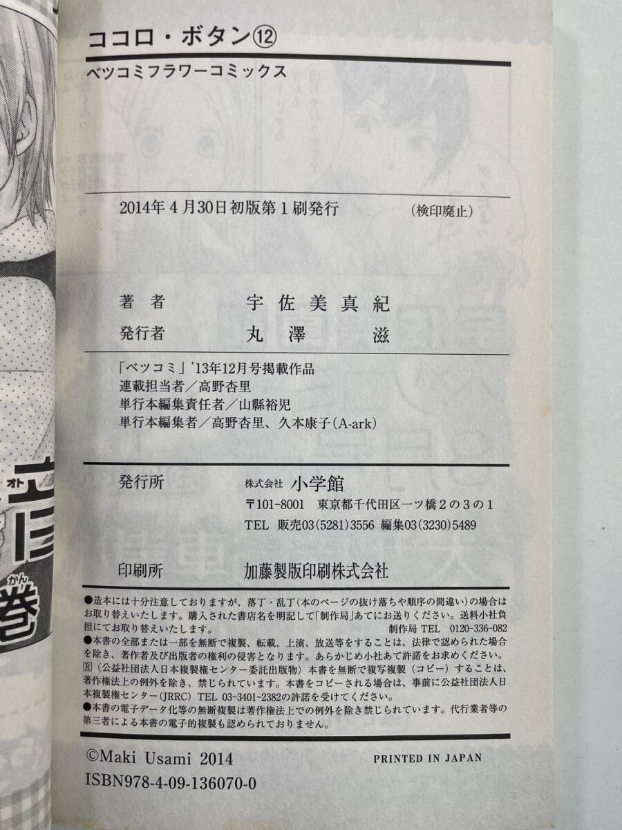 ココロ・ボタン12 フラワーC 宇佐美真紀著者 平成26年 2014年初版【K184479】251016 [浏览原始页面]