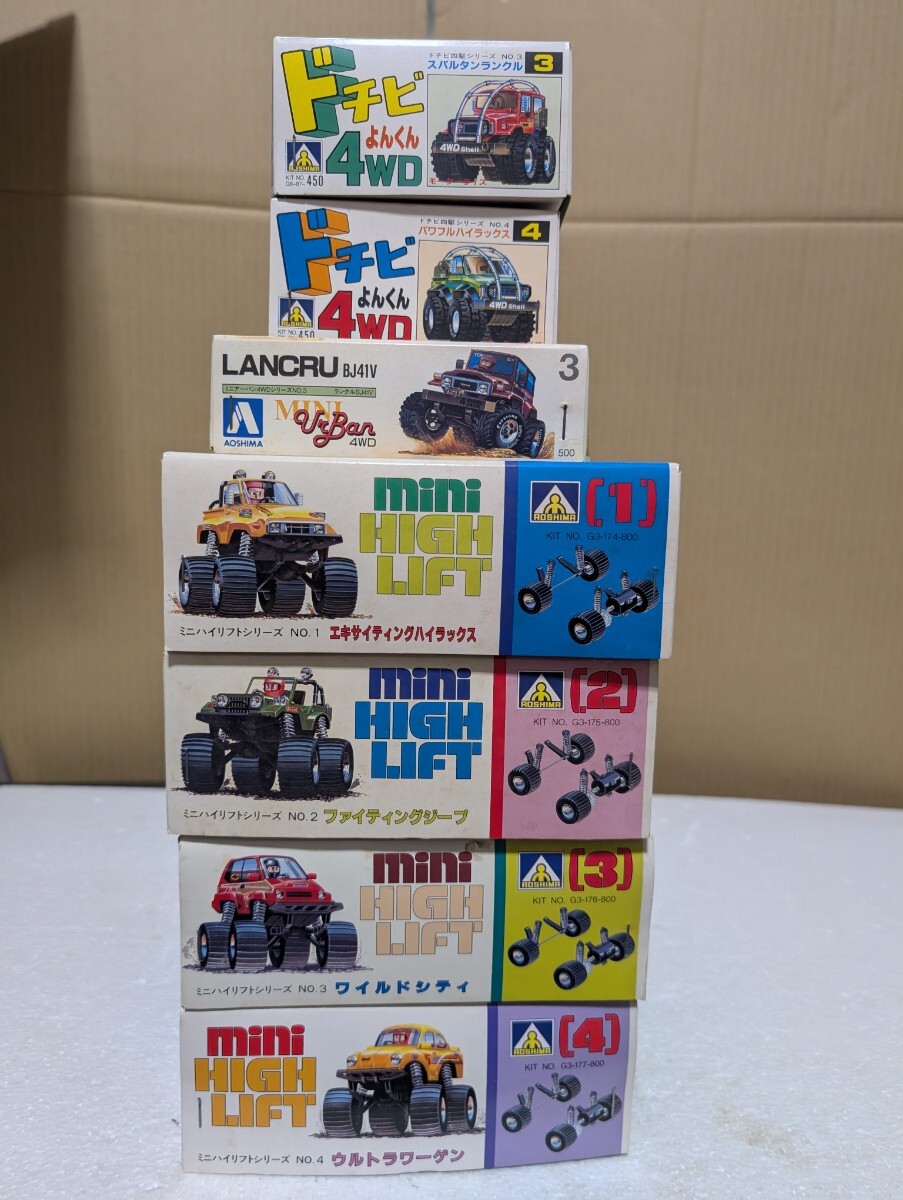 絶版 アオシマ AOSHIMA ミニハイリフトシリーズ 4点 1ハイラックス 2ジープ 3シティ 4ウルトラワーゲン ドチビ4WD ランクル サーフ BJ41です。| 出价者 | 信用 | 价格 | 时间 |