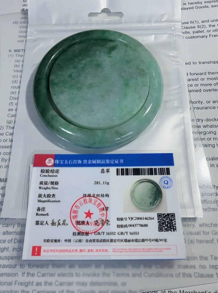 R2-02073 天然本翡翠《本物保証》 半円形 緑翡翠バングル60.9mm 一点物 希少 縁起物 お守り パワーストーン 海外鑑定書付き 美品 完璧