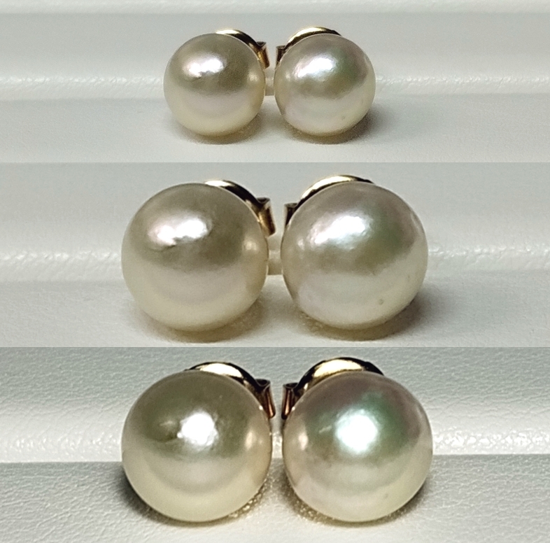 照りや巻きなど上質な珠には敵いませんが、イミテーションパールにはない上品で優しく柔らかい輝きがあります。