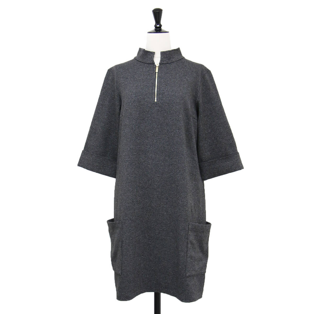 agnes b. アニエスベー ワンピース ダークグレー系 サイズ:2(M) | ハイネック チェック柄 ワンピース / チュニック | 7分袖 ハーフジップ