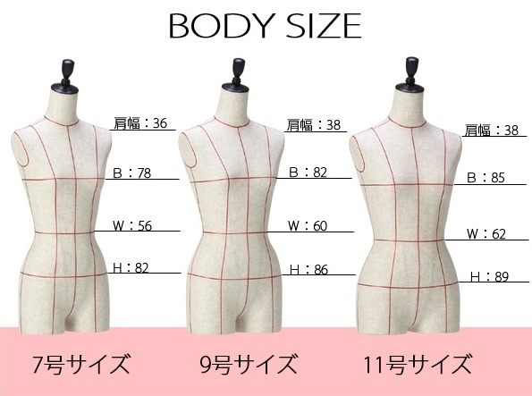 高さ81cm 肩幅35cm バスト80cm ウエスト57cm ヒップ83cm ※スタッフによる手計の為、多少の誤差はご了承下さい※ |