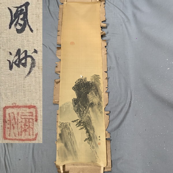 【模写】山水絹本掛軸まくり銘ありです。 商品画像が実際の商品そのものですので、ご入札前にしっかりとご確認いただきますようお願いいたします。 |