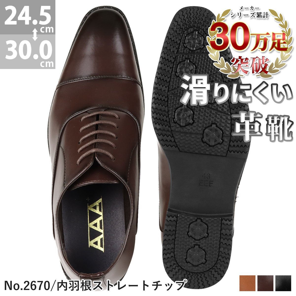 | 【AAA+ サンエープラス】 のビジネスシューズ。 革靴の中で最も信頼感のある内羽根ストレートチップですべてのビジネスシーンに対応可能な一足です。 グリップ力のあるソールで濡れた路面も滑りにくい防滑仕様や、ゆったりと履ける幅広3E仕様などビジネスマンにとってうれしい機能も詰まっています。 ※大きめとなっており、スニーカーサイズ28.5cmの方にお勧めのサイズとなります。 |