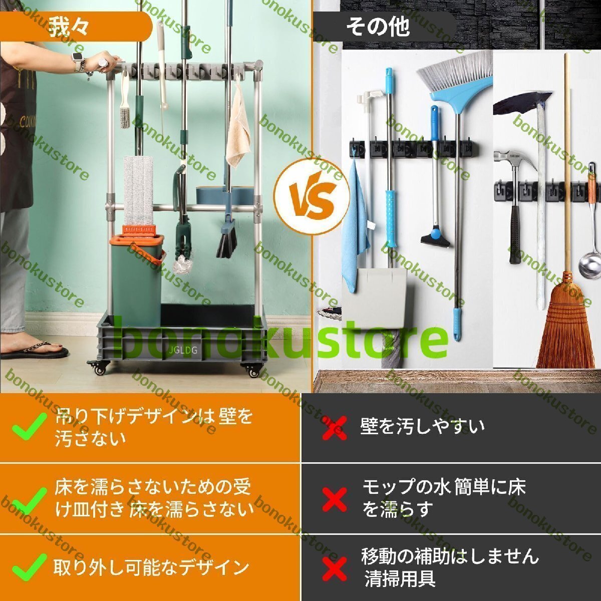 ほうきモップホルダーは、清掃用品を保持し、床から濡れたモップを保ちます 掃除用具収納
