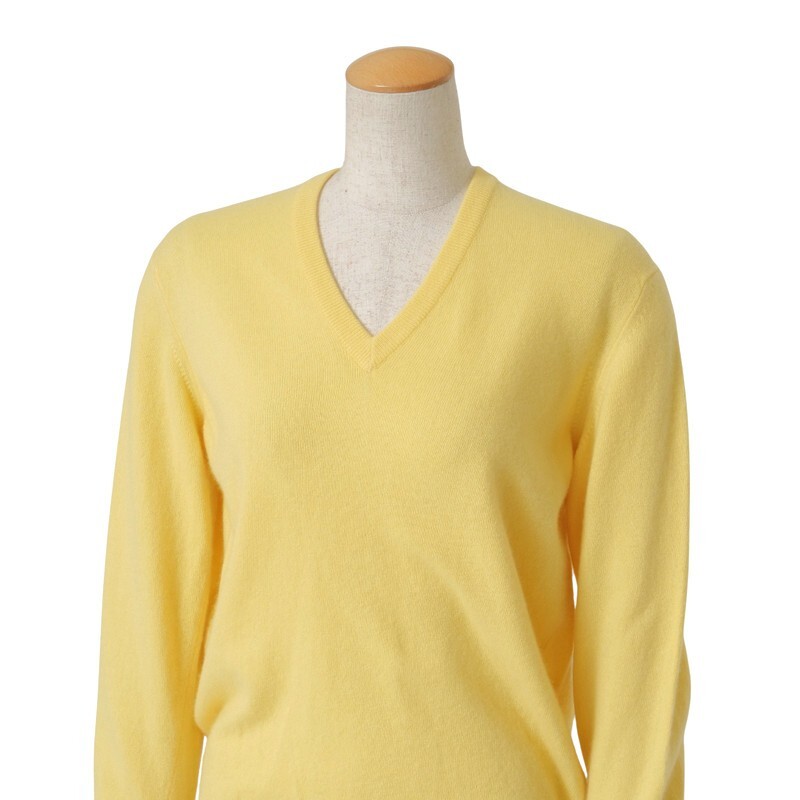 | TJ3595□英国製 FIVE STARS HOUSE 総カシミヤ ハイゲージ Vネック 長袖 セーター ニットプルオーバー レディース サイズM相当 イエロー系 | |||