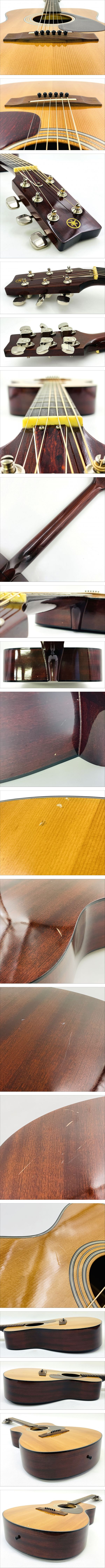 | ■状態評価■※弊店基準を元にしております。 中古整備品 ■仕様■ ・トップ材:スプルース ・サイド/バック材:マホガニー ・ネック材:マホガニー ・指板材:ローズウッド ・ブリッジ材:ローズウッド ■ 音質特徴■ YAMAHA初期FGシリーズ特有の、太く温かみのある中低音域と 枯れた倍音感が魅力。 特にこのFG-130はスプルーストップ×マホガニーの組み合わせにより、 ウォームで柔らかく、それでいて芯のあるサウンドを奏でます。 ストロークではドライブ感のある抜けの良い音、 フィンガーでは繊細で優しい響きが得られます。 半世紀以上の経年により木材が十分に乾燥し、 現行モデルでは得られないビンテージらしい鳴りが際立ちます。 ■ 総評■ 1960年代後半、YAMAHAが本格的にフォークギター市場へ進出した初期モデルのひとつで、 国産ビンテージの魅力を存分に味わえる名機です。 しっかり整備されており、即戦力として使用可能。 ■状態■ 経年による小傷・打痕がございますが、演奏上の問題はなく、 ビンテージらしい風格のある外観を保っています。 ※画像にて状態をご確認下さいましたら幸いです。 ※専門家に検品して頂きメンテナンス調整済みになります。 ※清掃済み、新品弦Aria AGS-200XLに交換済みです。 ■メンテナンス内容■ フレット磨き/FERNANDES スクラッチメンダー946 指板磨き&保湿/Dunlop (Jim Dunlop) FRETBOARD 65レモンオイル ボディ・ペグ清掃/ギタークリーナー・クロス ・フレットの状態確認 ・ネック:ほぼストレート ・フレット残り:全体的に約7〜8割 ■サイズ■ 全長:101.5cm ボディ最大幅:38cm 奥行き:10cm ナット幅:43mm 弦長:620mm 重量:1763g 弦高:6弦4mm 1弦3mm ※ご不明点は入札前に必ずご質問下さい。 (本文記載事項には返答いたしかねる場合がございます) ※画像1枚目に写っているものが全てになります。 【梱包発送について】 発送元は『札幌市 西区』 からとなります。 ヤマト運輸にて配送させて頂きます。 着払いでの発送、および定型外等その他発送方法には 業務上の都合によりご対応出来ません。 予めご了承下さいますよう、何卒宜しくお願い致します。 ※配送料金表は最下部に記載がございますので、大変お手数ではございますが一番下までスクロールしてご確認下さいませ。 ご入金確認後当日~2日以内で発送させて頂きます。 (基本的に24時間以内の発送になりますが、土日祝日は集荷予約が必要な為、発送出来ない場合がございます。予めご了承下さいませ) ■お支払方法について■ お支払いは『!かんたん決済』のみとさせて頂いております。 【お支払金額について】 落札価格+送料 上記の金額をご確認の上お支払いをお願い致します。 ※落札日から2日以内にお振込のお手続きをお願い致します。 ※落札後24時間以内に取引ナビにてご連絡が無い場合と 5日以内にご決済確認できない場合は、落札者都合での キャンセルとなりますので、ご理解の上ご入札をご検討下さいませ。 上記記載を予めご確認の上、ご入札・ご落札をお願い致します。 ■ご注意事項■ 【ご入札前に必ずご確認下さいませ】 いたずら入札、落札後のご連絡が取れなく放置の方が多くおられますので、注意喚起になります。 !かんたん決済のお支払い期限は「落札日から5日以内」です。 ご落札頂いてから24時間以内にご連絡がない場合と!かんたん決済のお支払い期限以内にご決済確認できない場合は「落札者都合として削除」させて頂きます。 上記の事例から「落札者都合として削除」した際は「非常に悪い落札者です」の評価を入れさせて頂く事となりますので、 報復評価等はなさらない様、予めご了承下さいませ。 上記内容で報復評価等があった場合に関しましては、 のトラブル申請制度に通報させて頂きます。 また、マイナス評価の多い方や新規IDの方、いたずら入札、取引継続困難と判断した際は、上記期間を経ずに入札の取り消し、または「落札者都合として削除」させて頂く場合がございます。 【商品の状態に関しまして】 弊店取扱い商品は、中古品が多く一度人の手に渡ったお品物でございます。 使用感、汚れ、変色、カビ、擦れ、剥がれ、金具類の錆、破損等がある場合がございます。 ※必ず状態の記載はいたしますが、商品はUSED品・もしくは保管品が主となりますので、神経質な方はご遠慮下さいますようお願い致します。 以上あくまでも中古品であることをご理解頂きました上でご入札下さいますようお願い申し上げます。 【色合いについて】 お色・状態に関しましては、モニター環境や太陽光・室内ライトなどの環境により見え方が違う事もございますのでご理解下さいませ。 パソコンやスマートホンなどモニター環境によりまして商品のお色、素材感は正確にお伝えするのは困難でございます。 ※また、匂い等の感じ方も大きく個人差が御座います、ご落札後の色味、匂い、素材感等の相違による返品・返金は 対象になりませんので、ご入札前に必ずご質問下さいませ。 ※サイズ・色・付属品