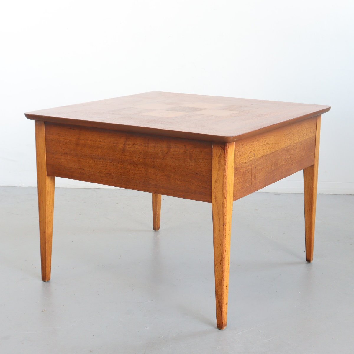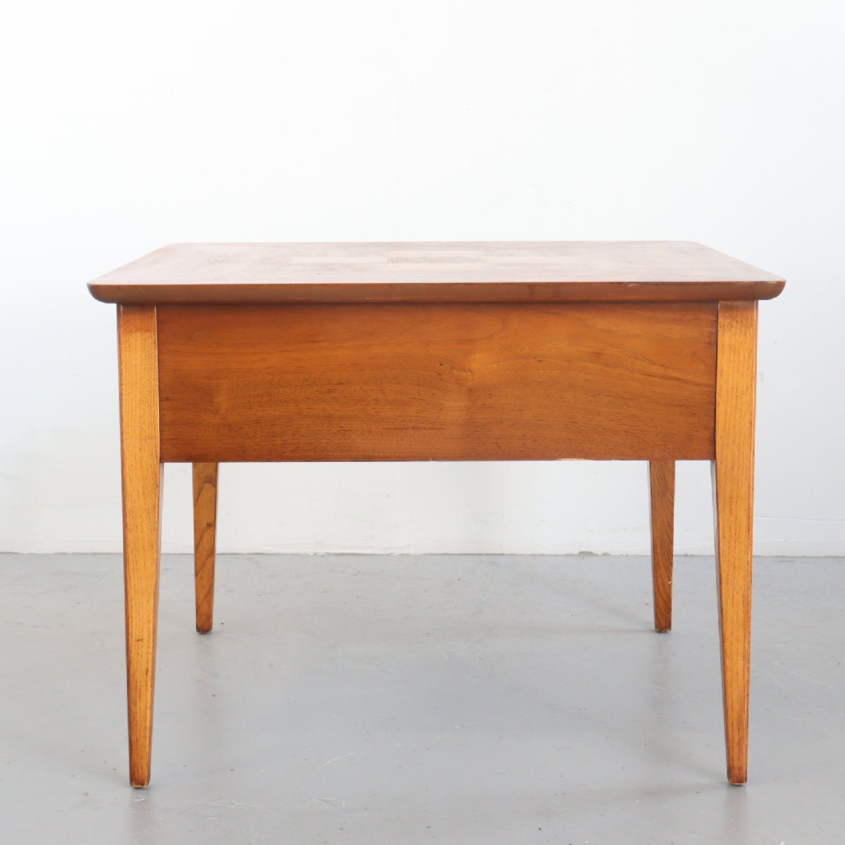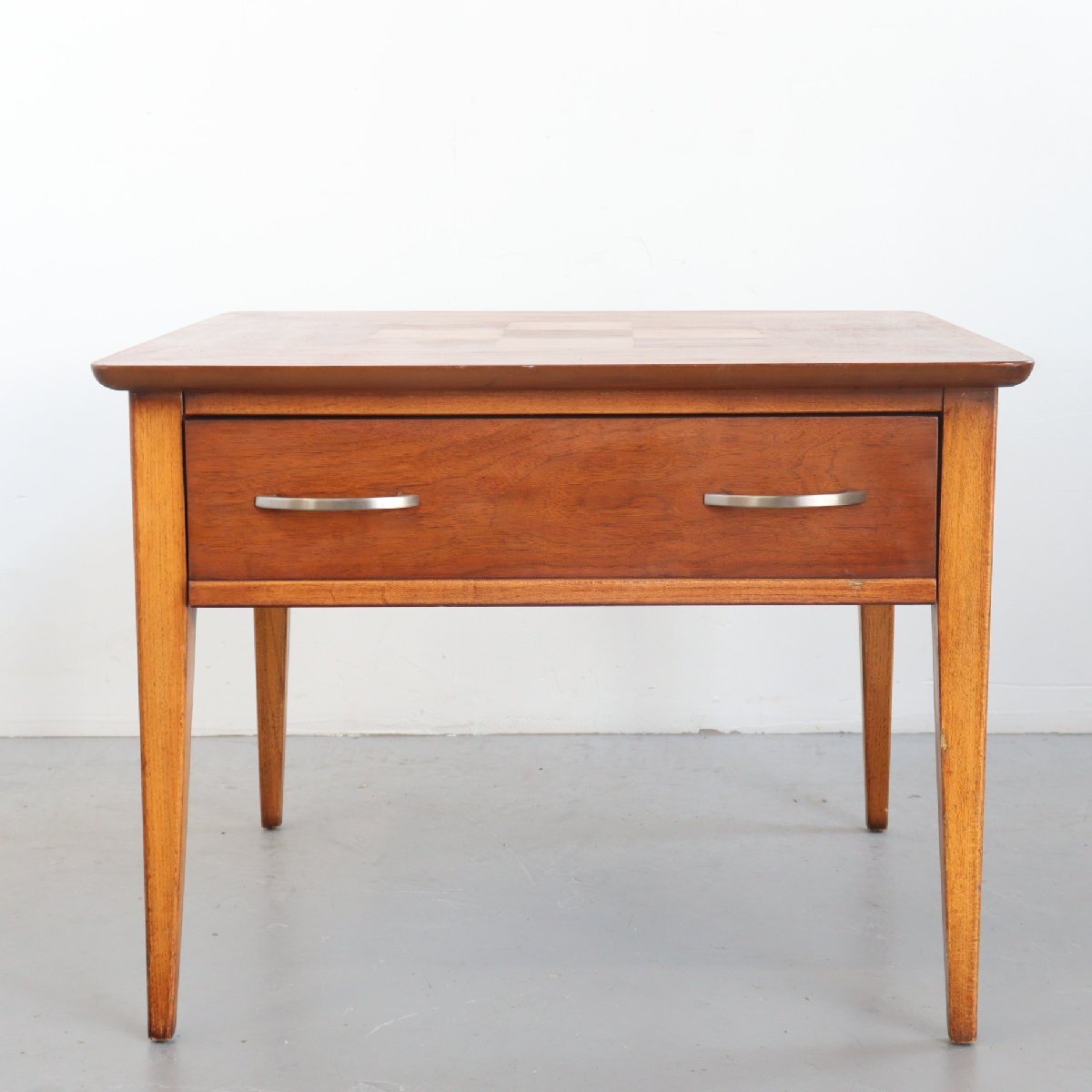 | 商品説明 explanation | 1950年頃のミッドセンチュリー期を代表する家具メーカー「LANE」社製のサイドテーブルです。 天板にはパーケットリーと呼ばれる幾何学模様の寄木細工されており、ミッドセンチュリー期らしい良い雰囲気です。 引き出しに書籍や小物の収納することができ、ベッドサイドやリビングなどの場所に最適なサイズ感です。 ご自宅や店舗にいかがでしょうか。 |