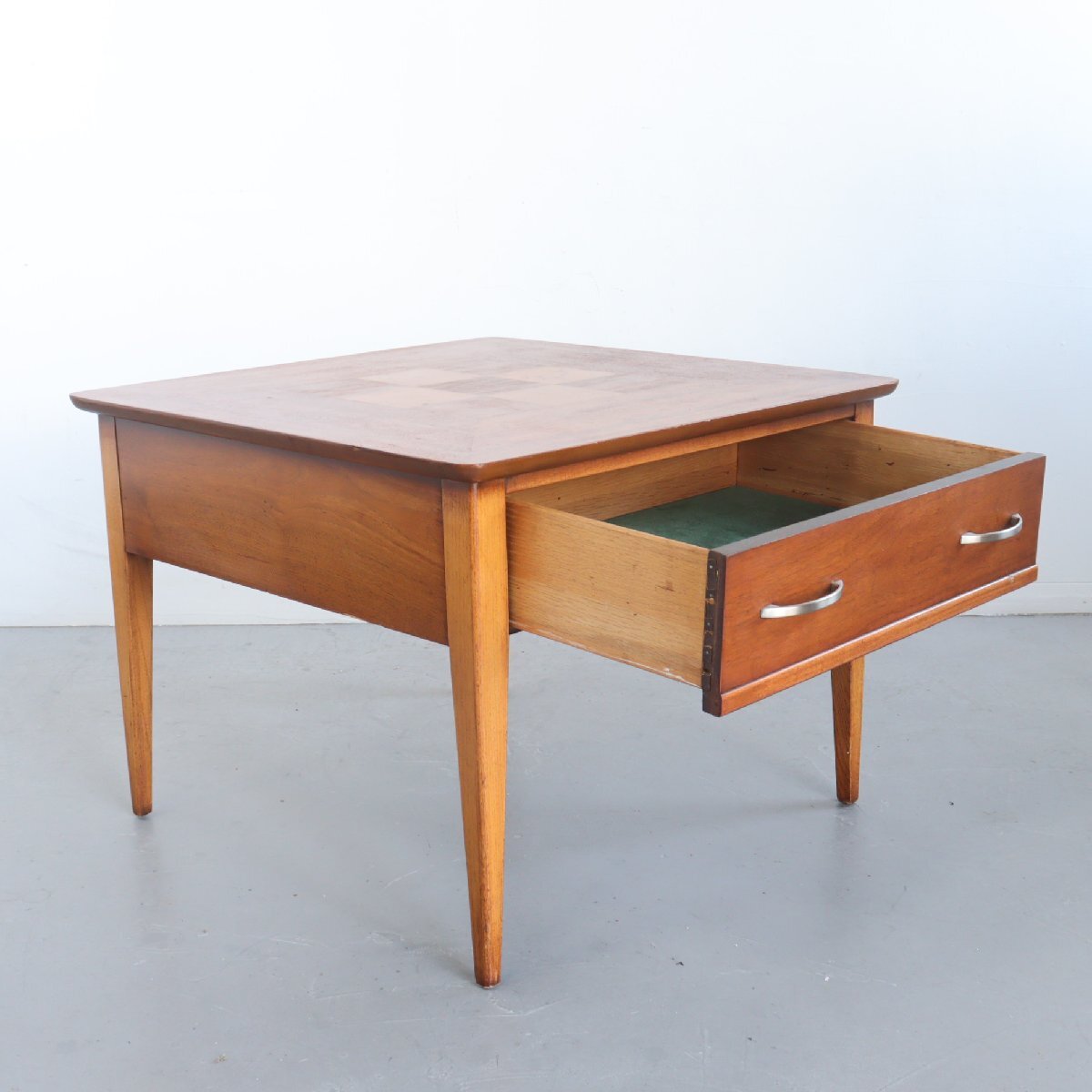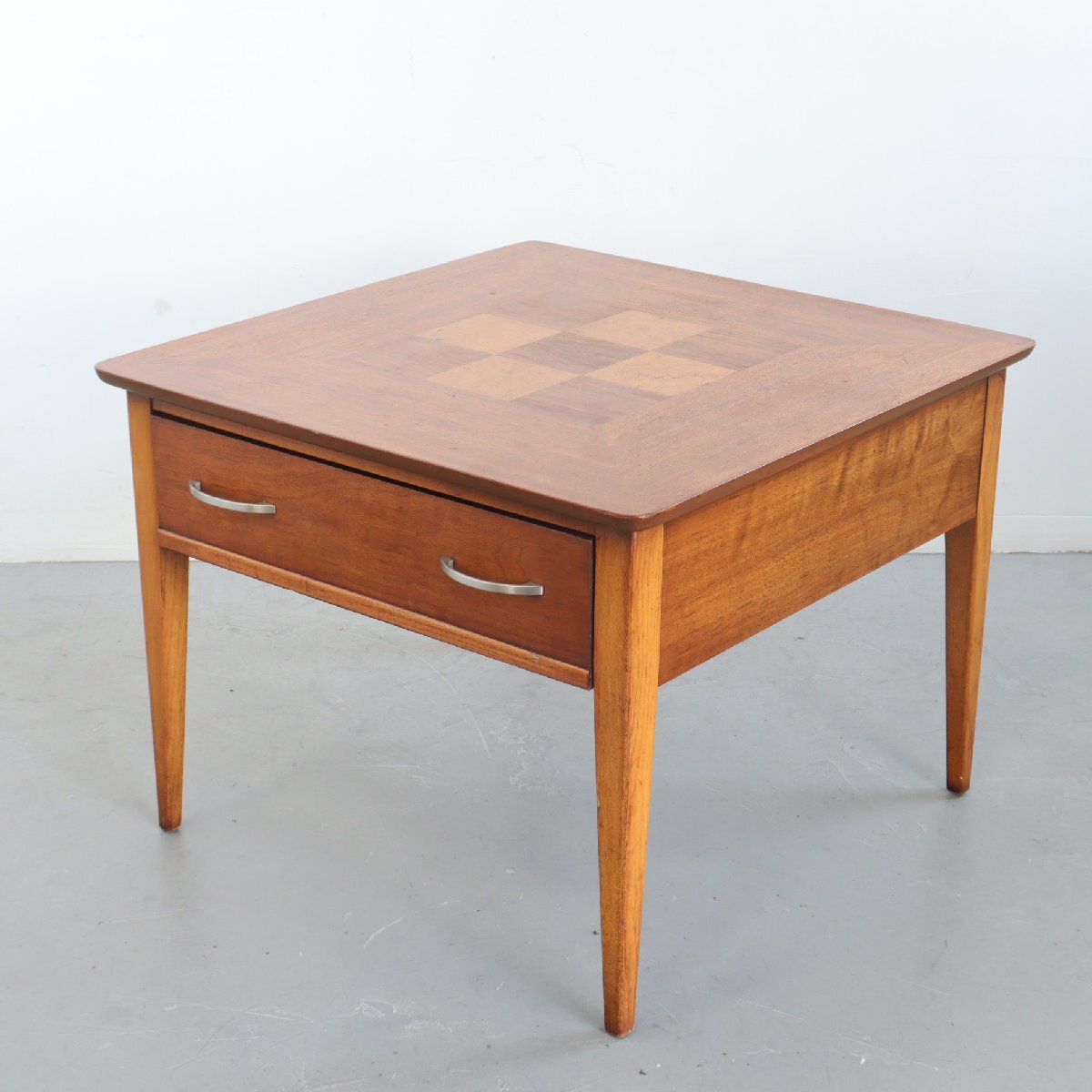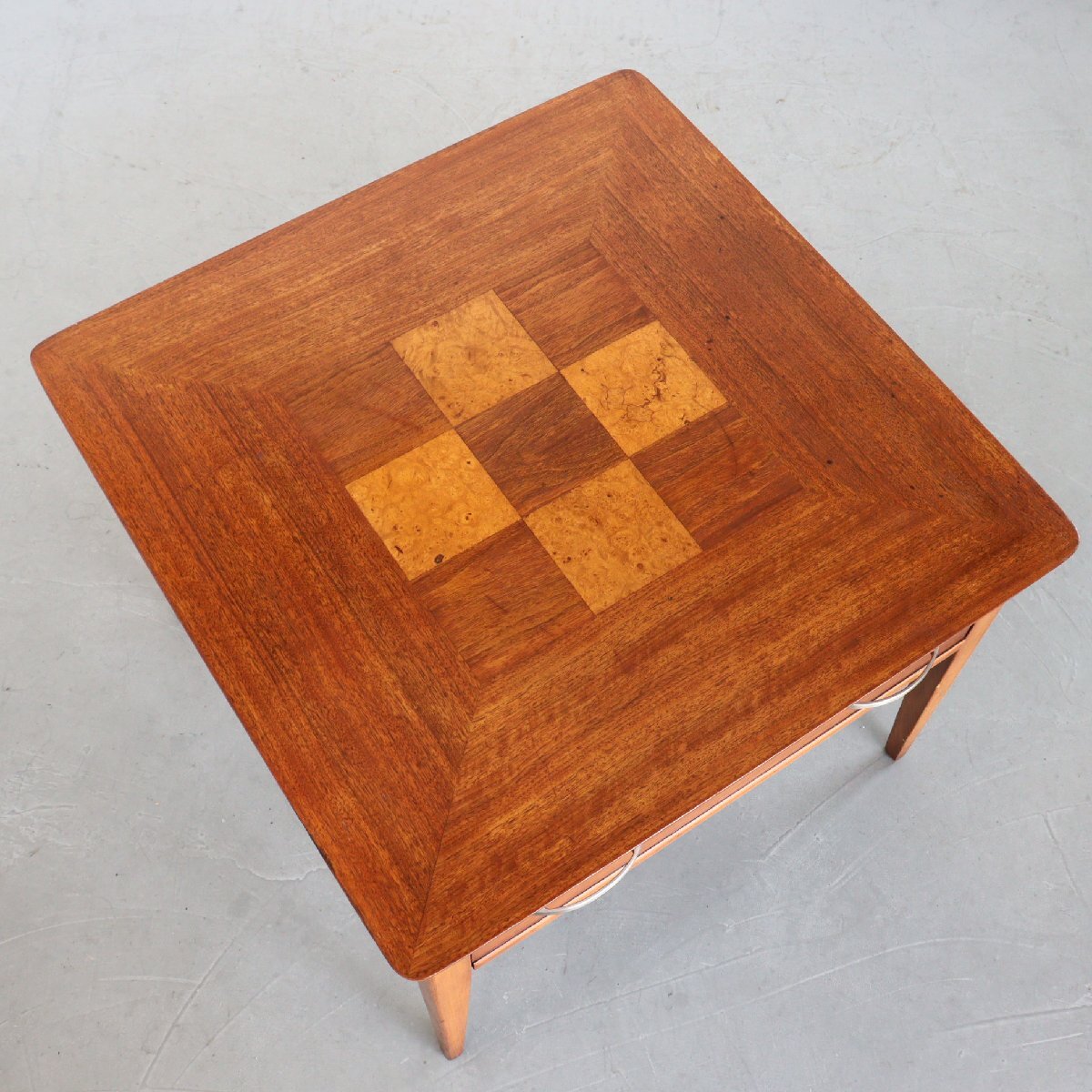 | 商品説明 explanation | 1950年頃のミッドセンチュリー期を代表する家具メーカー「LANE」社製のサイドテーブルです。 天板にはパーケットリーと呼ばれる幾何学模様の寄木細工されており、ミッドセンチュリー期らしい良い雰囲気です。 引き出しに書籍や小物の収納することができ、ベッドサイドやリビングなどの場所に最適なサイズ感です。 ご自宅や店舗にいかがでしょうか。 |