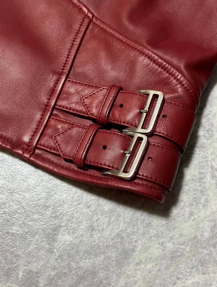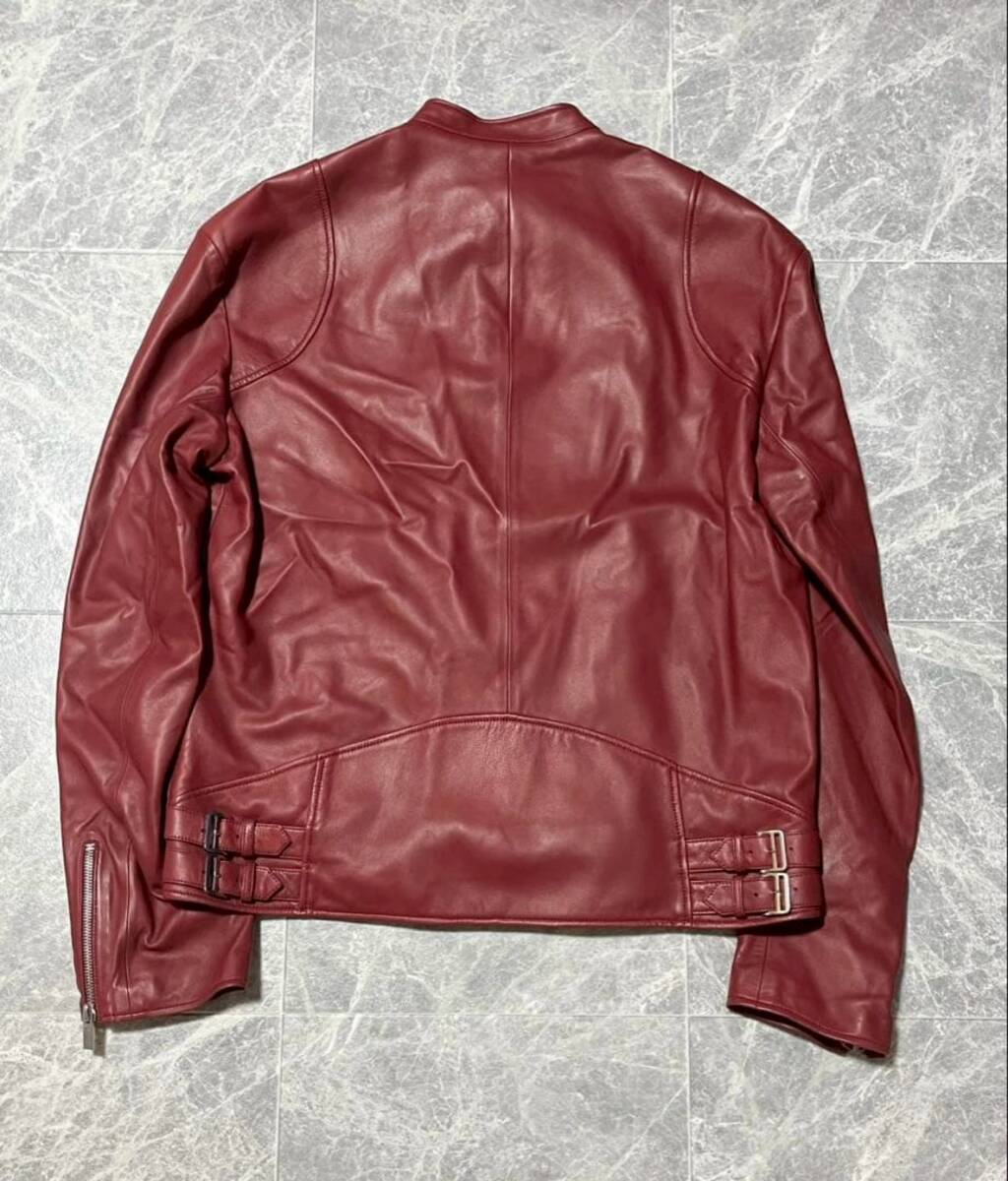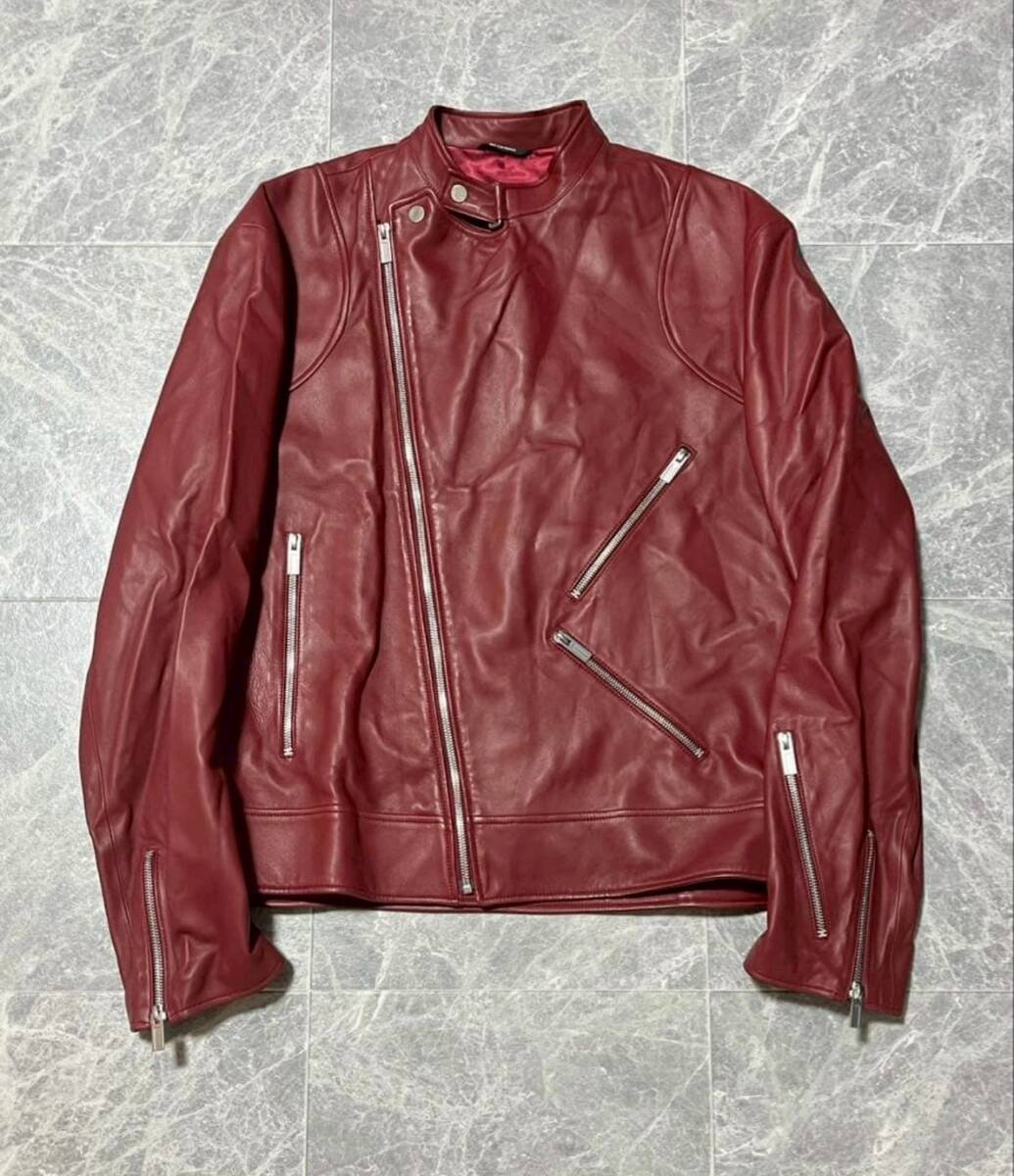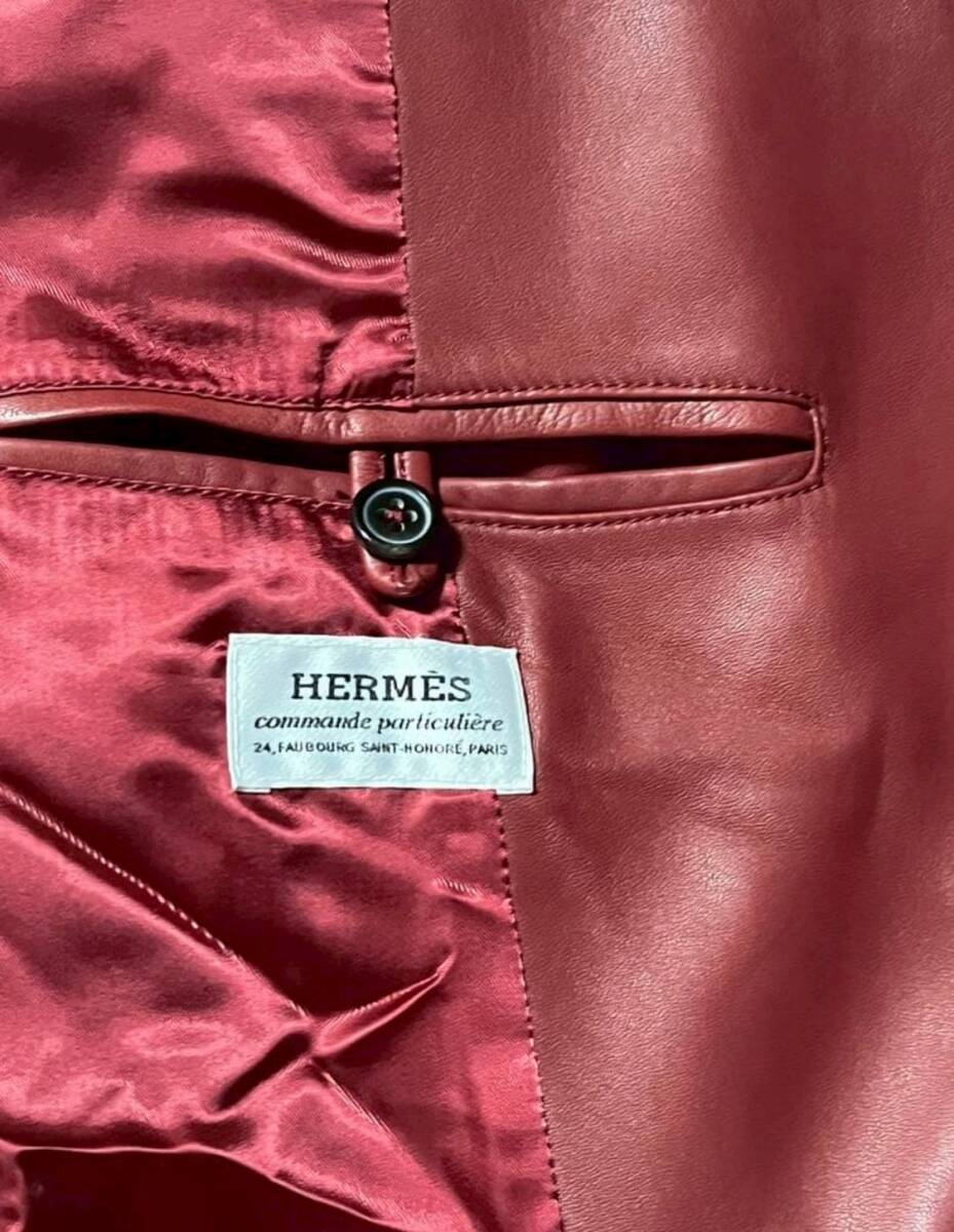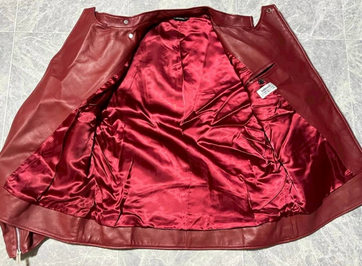 商品名: 顧客オーダー HERMES Ordered Lamb Leather Biker Jacket With Serie Buttons エルメス セリエ ボタン アシンメトリー ジップ ラムレザー ライダース ジャケット サイズ52-54 赤