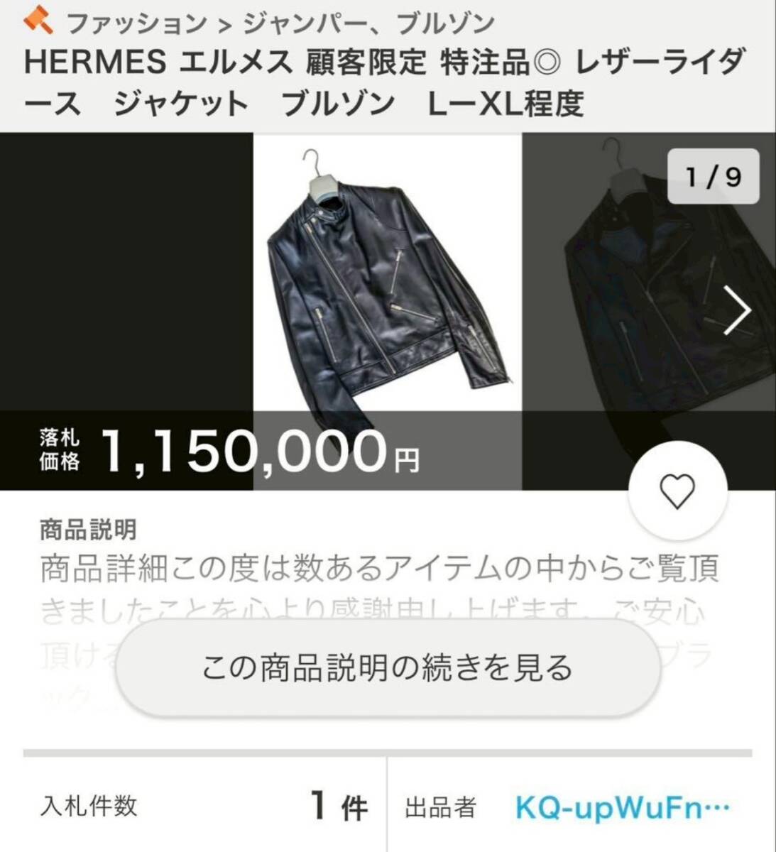 HERMESのライダースの中で最も人気のある1着です。