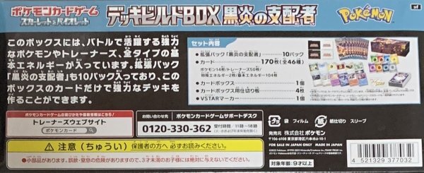 | 商品説明 | ポケモンカードゲーム スカーレット&バイオレット デッキビルドBOX 黒炎の支配者です。 |