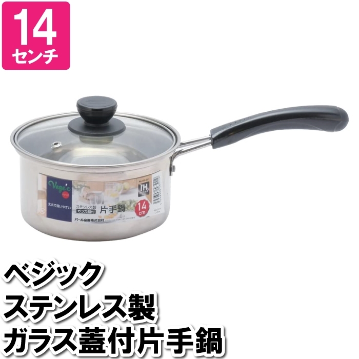 | 片手鍋 14cm ステンレス製 ガラス蓋付 IH |