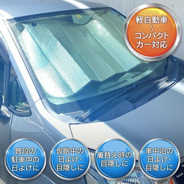 | ■ 軽自動車~コンパクトカー対応 ■ アルミコーティング断熱材で直射日光を防ぐ ■ ガラスが傷付きにくいソフト素材を採用 ■ 吸盤付きで着脱カンタン ■ 折りたたんでコンパクトに収納 ■ 折りたたみ時に便利なゴム付き |