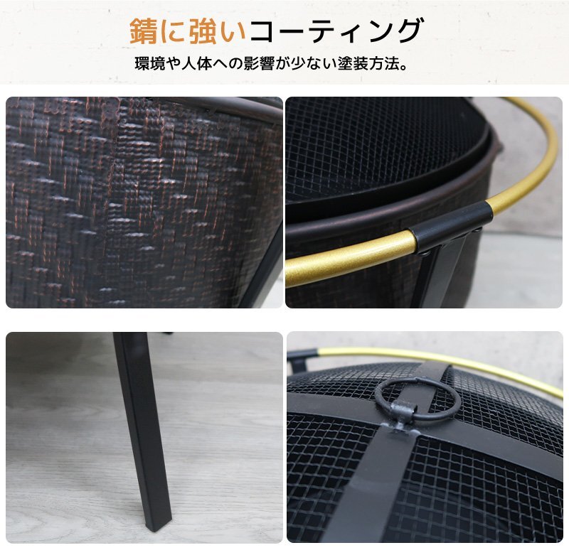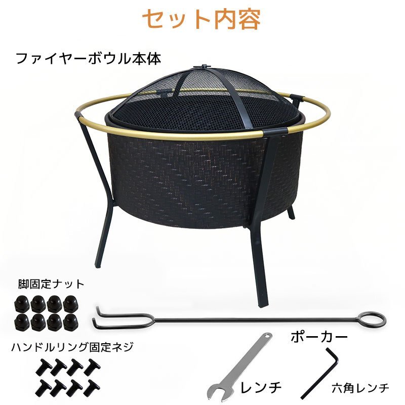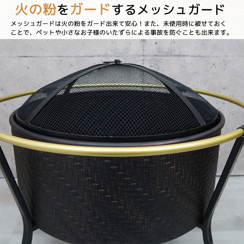自宅の庭がキャンプ場に!メッシュ蓋付きでペットや小さなお子様が居ても安心。 年中使えるおしゃれなデザインの焚き火で、ワンランク上の休日をお楽しみください。 ■火の粉をガードするメッシュガード メッシュガードは火の粉をガード出来て安心!また、未使用時に被せておく ことで、ペットや小さなお子様のいたずらによる事故を防ぐことも出来ます。 【商品詳細】 サイズ(約):幅70×奥行き70×高さ60cm 重さ(約):6kg 材質:鉄 カラー:ブラック セット内容:ファイヤーボウル、メッシュ蓋、ポーカー ※こちらの商品はお客様にて簡単な組み立てが必要になります。 ※英文説明書が付属しております。 |