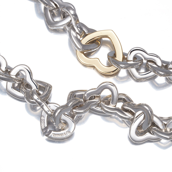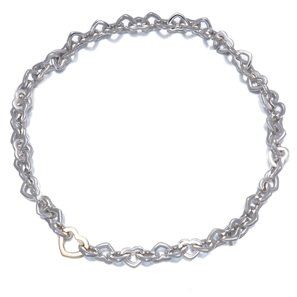 オープンハートのパーツを贅沢に並べたエタニティにネックレス。メインには18金を仕様したハートを飾り胸元で素晴らしい輝きと存在感を魅せてくれます。 |