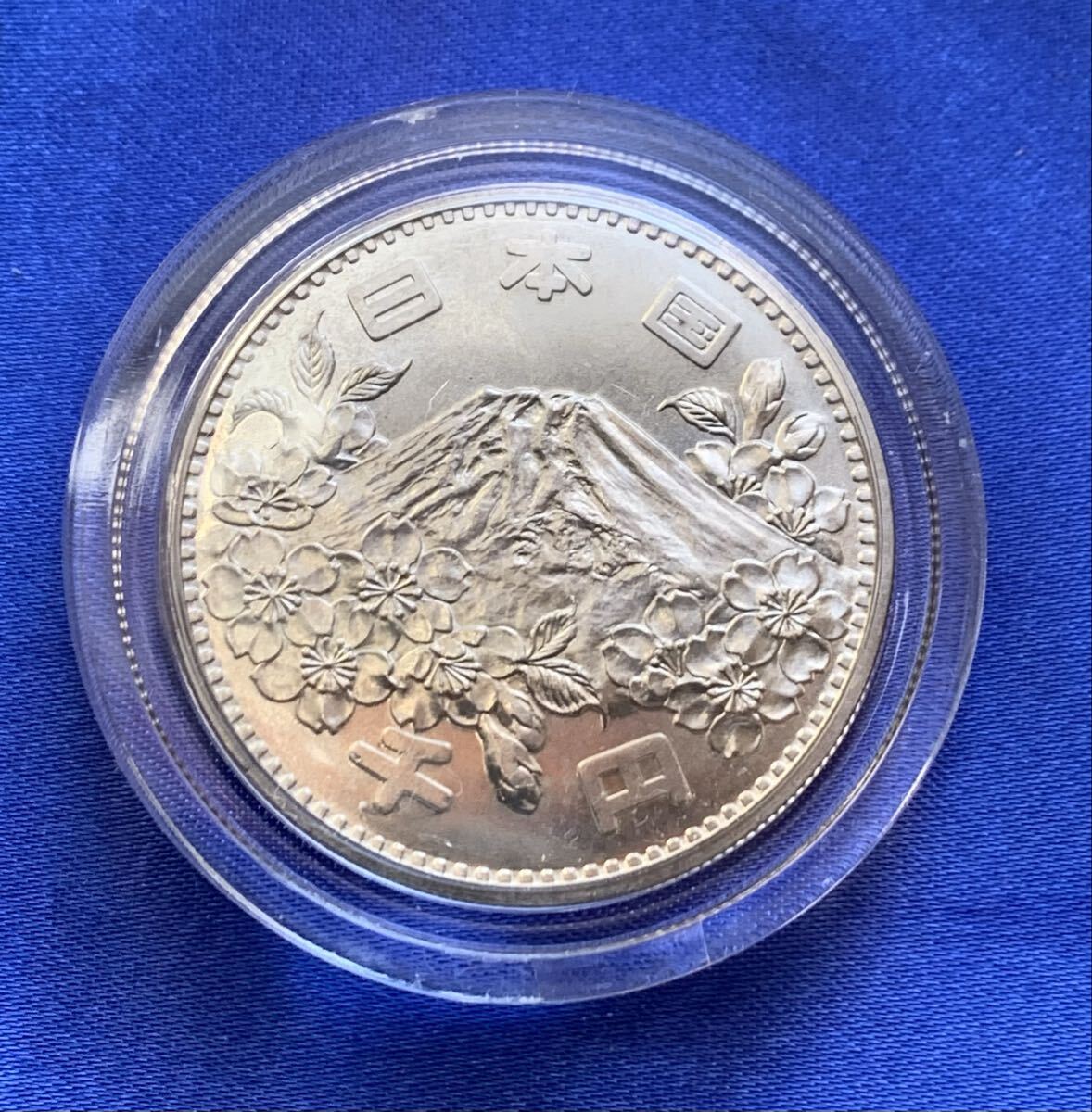 ◆東京オリンピック記念1000円銀貨 昭和39年 図 案:富士と桜 発行日:昭和39年10月(1964年) 直 径:35mm 品 位:銀925/銅75 量 目:20g |