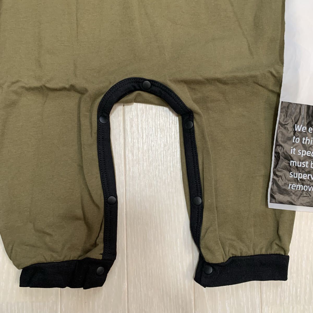 【未使用品】SHEIN KIDS カーキ色 長袖ベビーロンパース 黒帽子セット 80cm ベビー服