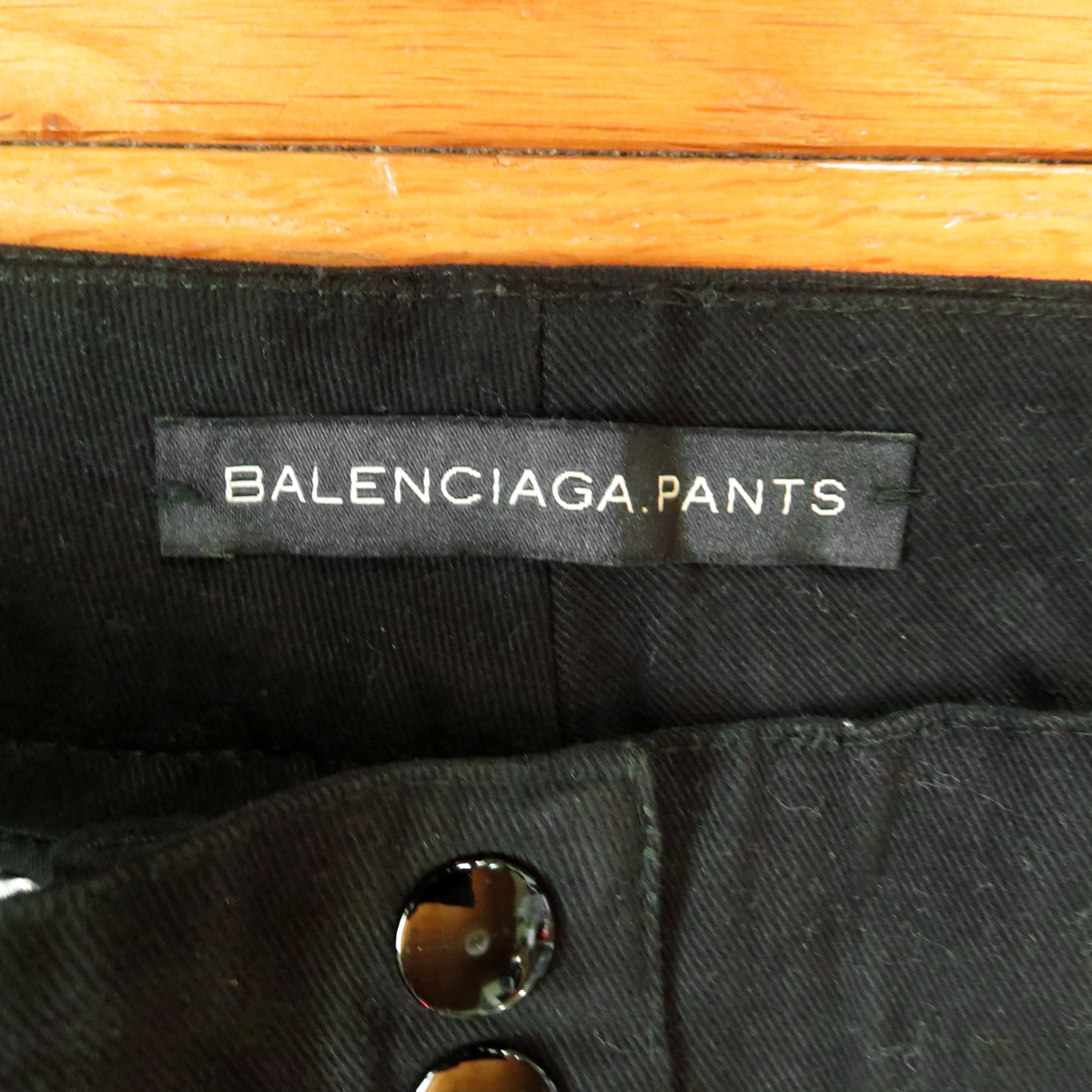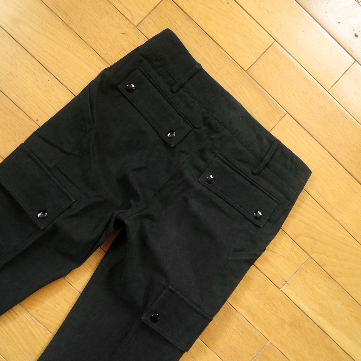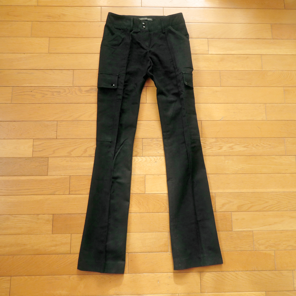 バレンシアガのブラック パンツ スラックスです。 スリムフレア系シルエットのバレンシアガのパンツで、センタープレスのブラックパンツです。 サイドにポケットもあり、パラシュートパンツのような、 とっても可愛いバレンシアガらしいデザインになっています。 生地もコットン100%ですが、とても柔めの生地で手触りもとっても良い感じです。 お色はブラックです。濃いめのブラック色になっています。 写真が見やすいように少し明るく写っているのもの、まだらのように明るくなっている部分もありますが、 光の加減でひどい色落ちしているような部分はありません。 スリムフレアのブラックのパンツなので、いろんなコーディネートに合わせていただけます。 【コンディション】 使用感は普通にありますが、着用に支障があるような大きな汚れ、大きな破れ等はありません。 十分着用していただけると思います。 ★わずかですが、黒が色落ちしたような部分はあります。 いかがでしょうか^^ --------------------------------------------------------------------- 【表記】サイズ 34 【実寸】 平置き ウエスト 34cm×2(68cm)(平置き後ろ直線測定) 股上 22cm 股下 85cm 裾幅 20.5cm もも幅 21.5cm (股下付け根より10cm程下を水平に計測) 前後程度になります。※平置き、素人採寸になりますので、多少の誤差はお許し下さい。 --------------------------------------------------------------------- 【色】 ブラック 【フロント】 ジッパー 【素材】 コットン100% 【生産国】 イタリア製 【USED品】 ------------------------------------------------------------------- ◆ 他にもいろいろデニムなど出品していますので、よかったら見ていってください。 ◆ もちろん同梱もできますので、お気軽にご質問ください。 ◆ 気持ちの良いお取引を目指していますので、ご質問は事前にお気軽にどうぞ。 終了直前だとお答えできない場合があります。どうぞよろしくお願い致します。 | ||||