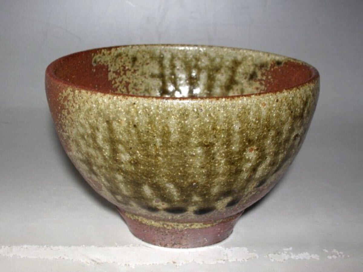 加守田章二作の灰釉茶碗です。 加守田芸術の見事な景色の作品です。 【加守田章二(かもだしょうじ)1933-1983】 陶芸会の鬼才。大阪府岸和田市に生まれる。 富本憲吉に師事。 昭和34年栃木県益子にうつり、岩手県遠野に陶房をかまえる。 昭和42年陶芸家として唯一高村光太郎賞を受賞する。 40歳の若さで陶芸家初の芸術選奨文部大臣新人賞(美術部門)を受賞する。 デザインを研究し、独創的な器形を広く展開し高い評価を受けていた。 サイズ 直径13.5cm/高さ9cm(多少の誤差はお許しください) 状態 一見して疵やヒビ・直しは見られません。 骨董品という事をご勘案頂き、時代経過のスレや、小さな傷がある場合があるかもしれませんのでご承知置きください。 | |||